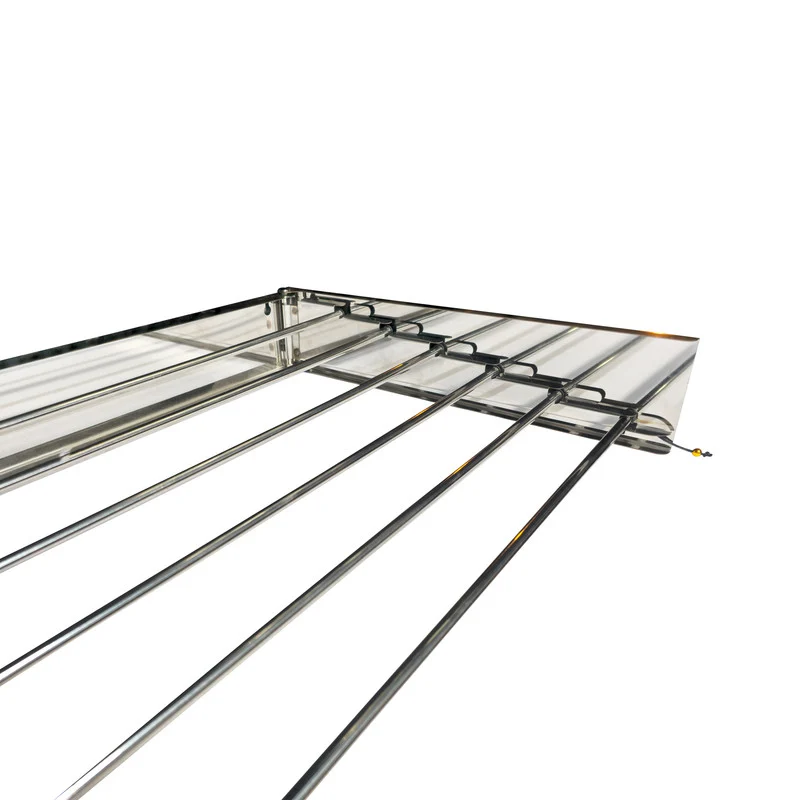 بندرخت تمام استیل به طول 1 متر می باشد. دارای 6 میله ی 98 سانتی متری است. جنس بدنه استیل نگیر و ضد زنگ است که در برابر رطوبت و تابش آفتاب و ضربه و مواد شیمیایی فوق العاده مقاوم می باشد. جنس میله ها استیل ضد زنگ است. قابلیت نصب در فضای داخلی منزل، حمام، بالکن و یا هرجای دیگری را دارد. سه عدد پیچ رولپلاک داخل بسته بندی جهت نصب آسان قرار داده شده است. در عین کاربردی بودن، فضای بسیار کمی را اشغال می کند و ظاهر بسیار جذابی به دکوراسیون منزل می دهد. بدلیل تاشو بودن محصول، میله ها کاملا تمیز می ماند. این بندرخت بدلیل جنس تماما استیل خود، برای مناطق شرجی که رطوبت هوا فوق العادع بالا می باشد، بسیار مناسب می باشد و یک بندرخت تمام عمری است.