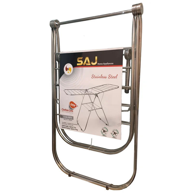 بند رخت 6070 ساج یکی از با کیفیت ترین محصولات ساج است که لوله های به کار رفته در آن از جنس استیل نگیر و ضد زنگ می باشد. اتصالات و مفتول نگهدارنده باله های این محصول از جنس آهن آبکاری شده است. بند رخت ساج به عنوان یک بندرخت سبک و مقاوم در برابر رطوبت شناخته شده است. این محصول یک محصول کاملا ایرانی می باشد که از کیفیت قابل توجهی نسبت به نمونه های خارجی برخوردار است.