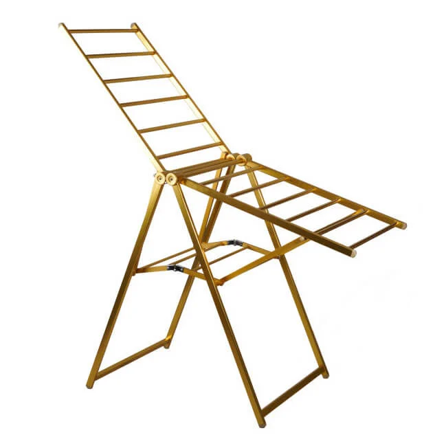 اگر بدنبال یک بند رخت محکم با تحمل وزن زیاد برای خشک کردن پالتو، لباس، کفش، پتو و … هستید و اگر یکبار برای همیشه می‌خواهید یک بند رخت با طول عمر بالا و کیفیت بی‌نظیر داشته باشید قطعا ما به شما بند رخت رزنبرگ را پیشنهاد می‌کنیم. این بند رخت از بهترین مواد اولیه و مقاوم‌ترین استیل ضد‌زنگ ساخته شده و حتی کوچکترین جزییات آن هم ضد‌زنگ هستند. عموما اکثر بند رخت‌ها پس از مدتی از ناحیه پیچ و لولا دچار زنگ‌زدگی می‌شوند اما این بند رخت به هیچ عنوان زنگ نزده و تحمل وزن بسیار بالایی را دارد. آبکاری طلایی و برنز آن در بهترین کارخانه‌های دنیا انجام شده و به‌هیچ عنوان کمرنگ نشده و تغییر رنگ نخواهد داد. بند رخت پرنس هوم مدل ARMANI که با قابلیت جمع شدن (تاشو)، از‌جمله بهترین وسایل برای خشک کردن لباس‌ها در خانه محسوب می‌شود. با وجود این بند رخت قادر هستید، در فضای داخلی اتاق‌ها حدود 20 متر طول رخت آویز جهت خشک کردن لباس‌هایتان در اختیار داشته باشید. بعد از باز کردن بند رخت 20 میله‌ی فلزی و محکم را در اختیار دارید که تحمل بیش از 70 کیلوگرم وزن را دارند. طول کلی بند رخت بعد از باز‌کردن به 150 سانتی‌متر می‌رسد و درنتیجه فضای کافی برای خشک کردن لباس‌های مختلف را برایتان فراهم می‌کند. ناگفته نماند که میله‌هایی که در قسمت پایین بند رخت مشاهده می‌کنید، برای جوراب، لباس‌زیر، دستمال‌های نظافتی و… قابل‌استفاده هستند. از دیگر ویژگی‌های این بند رخت زیبا و محکم وزن بسیار کم آن است و همچنین حجم بسیار کم این بند رخت در هنگام جمع‌شدن به شما این امکان را می‌بخشد که آن را در‌هر نقطه‌ای از منزل به آسانی نگهداری کنید.