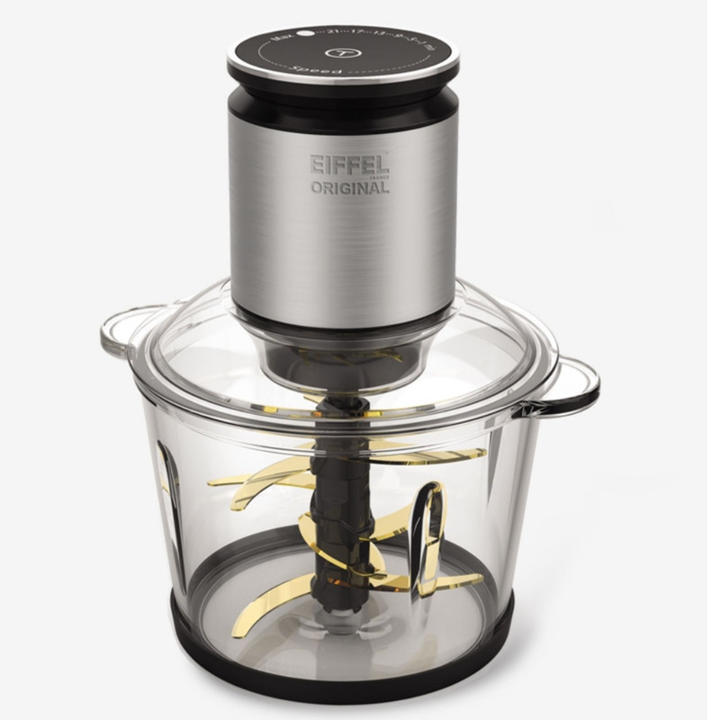 خردکن برقی قدرت : 1500 وات و 9 تیغه ی تیتانیوم ، ظرفیت 3 لیتر ؛ موتور گیربکس ، شفت فلزی ، تیغه ها قابل جدا شونده ، دو سرعته با عملکرد توربو، موتور قوی برای خرد کردن میوه و سبزیجات , گوشت و آجیل و…ساخت فرانسه می باشد.