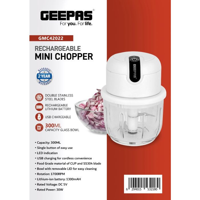شرکت جیپاس با سابقه بیش از 35 سال در عرضه لوازم خانگی و صوتی و تصویری و ابزار صنعتی بیش از 1500 کالا به بازار عرضه می کند و در قاره های آسیا ، اروپا و آمریکا از استقبال قابل توجهی برخوردار است . از علل موفقیت این برند کنترل کیفیت بالای محصولات شرکت و نیز قیمت مناسب آن است . خرد کن شارژی مدل GMC42022 با قابلیت استفاده در شرایط بی برقی با استفاده از نیروی ذخیره شده در باتری داخلی خود ، برای آشپزی درشرایط بی برقی بسیار ضروری است . توان دستگاه 30 وات است و در مقایسه با انواع برقی قدرت کمتری دارد .