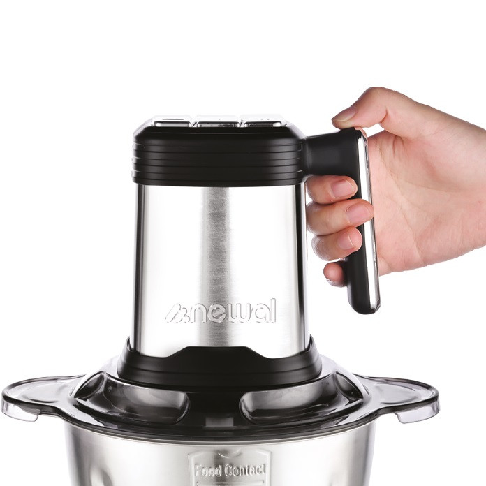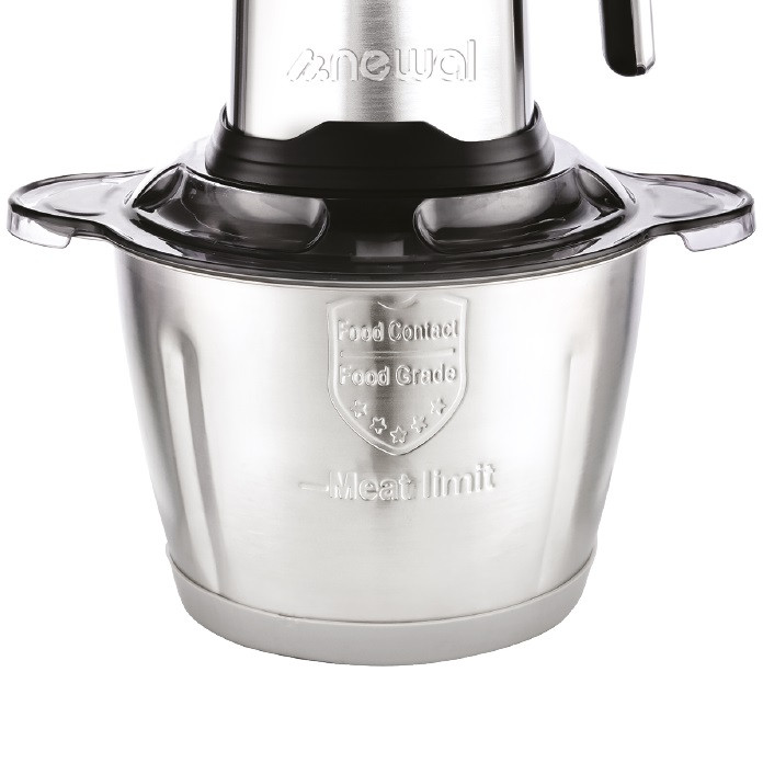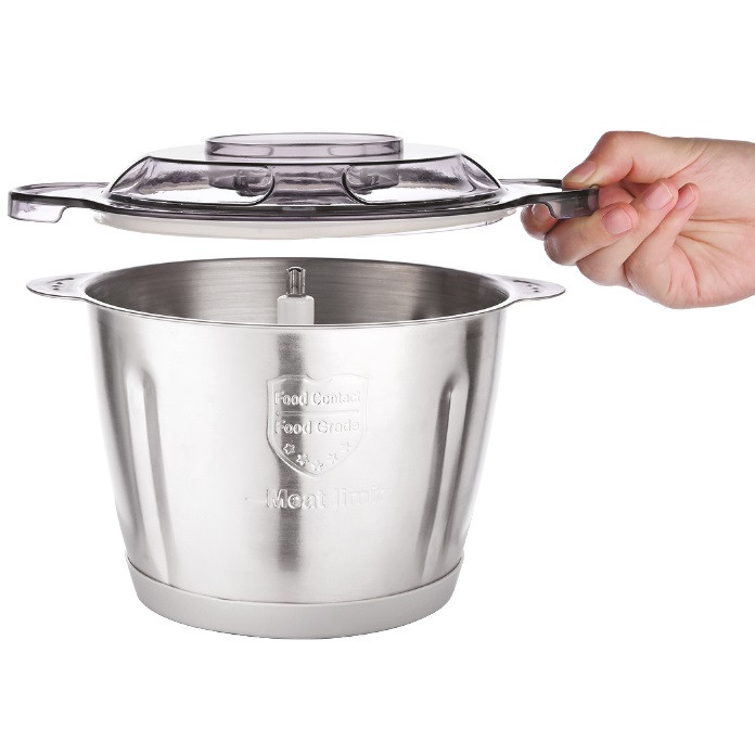 کاسه فولاد ضد زنگ با ظرفیت 3 لیتر میباشد دارای بدنه فولادی ضد زنگ است • تیغه دولایه تیز فولاد ضد زنگ را دارد و 3 سوئیچ سرعت قابل تنظیم دارد. کاربرد آن شامل چرخ گوشت، سبزیجات و غیره میباشد