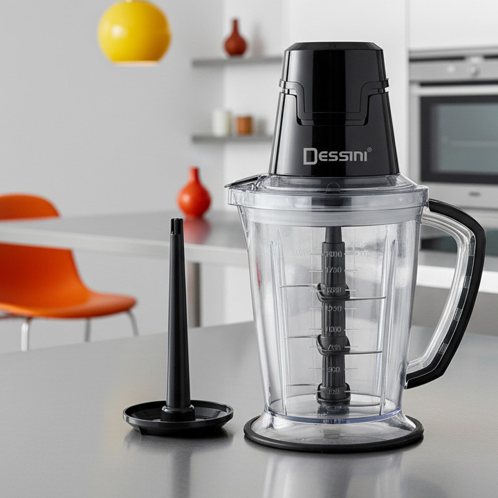 خردکن با ظرفیت ۱ لیتر, عملکرد آسان با کلید روشن/خاموش (On/Off Selector), تیغههای تیز و مقاوم از استیل ضدزنگ, (Security Lock), دارای پایههای ضدلغزش برای استفاده مطمئن, ولتاژ: ۲۲۰ ولت / ۵۰ هرتز, توان موتور: ۴۰۰ وات