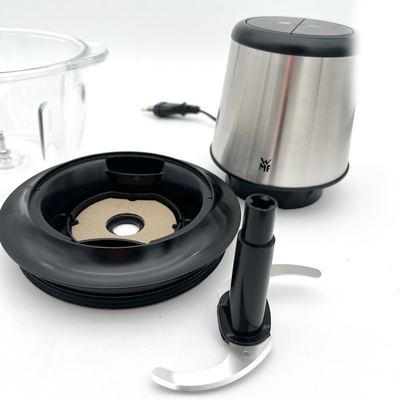 خرد کن برقی دبلیو ام اف مدل WMF KULT X یکی از بهتربن و لوکس ترین خرد کن های موجود در بازار است که از استیل و فولاد کرومارگان ساخته شده که تیغه دو لبه آن از جنس فولاد ضد زنگ و موتور 320 وات مناسب برای خرد کردن ، مخلوط کردن ، برش سبزیجات ، میوه ، گیاهان و … است .