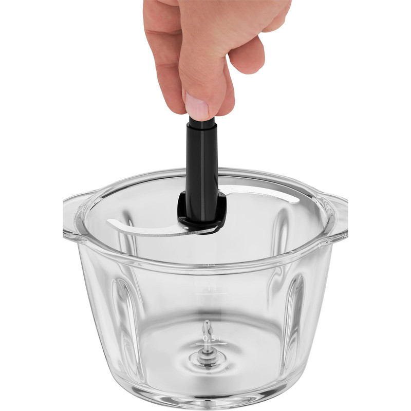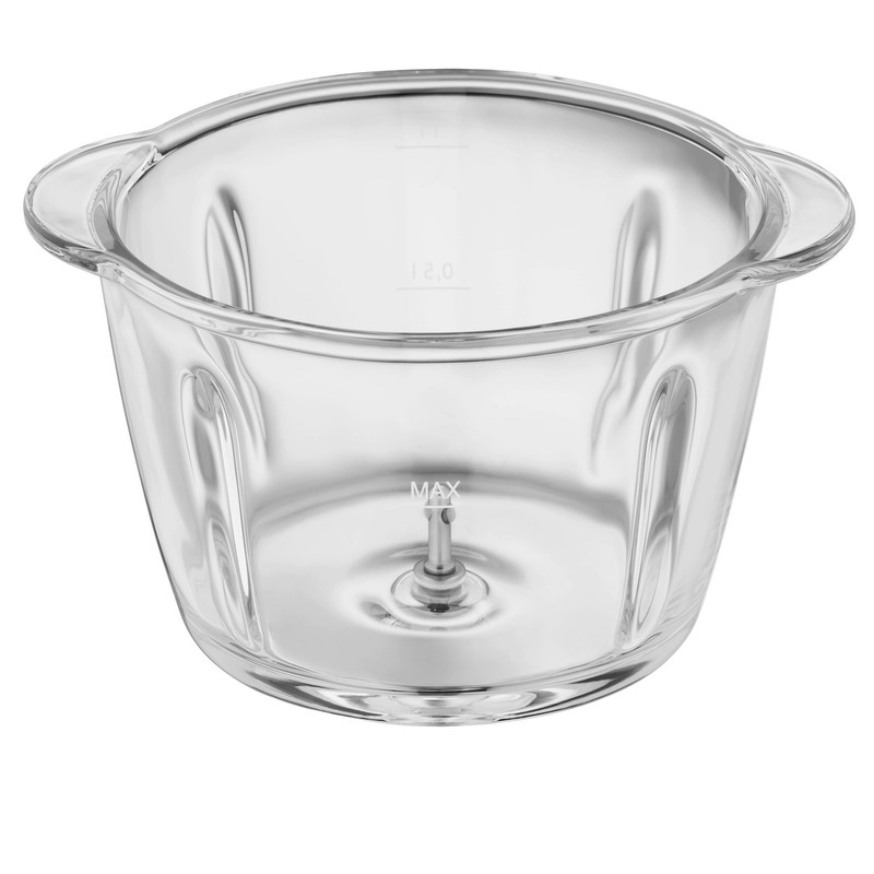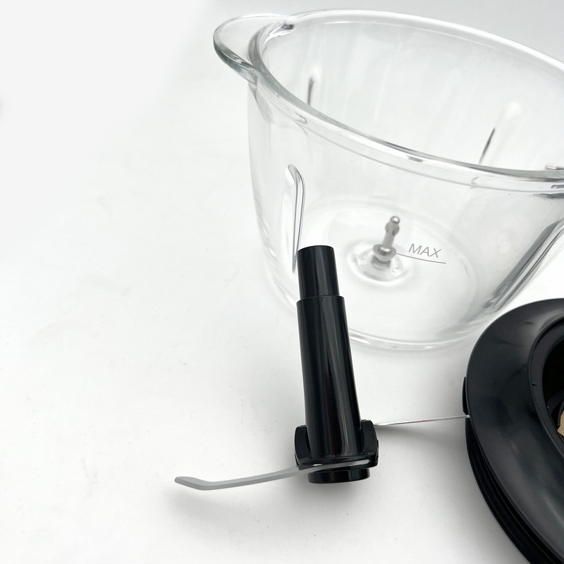 ظرف یک لیتری آن از جنس شیشه بسیار مقاوم و با فناوری بالا و بسیار مجهز ساخته شده است . تیغه فولادی آن از یک سمت مقداری خمیده هست تا پایین ترین سطح مواد داخلی را خرد کند .