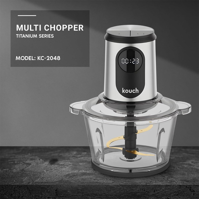 خردکن کوخ مدل 2048 یک دستگاه خرد کن و غذاساز برقی چهار تیغه تیتانیوم با ظرفیت 2 لیتری و توان 500 وات از برند جدید و معتبر KOUCH ساخت کشور آلمان می باشد. این دستگاه خردکن دارای ظرفی از جنس شیشه ای پیرکس و با گنجایش دو لیتر است و روی قسمت موتور این دستگاه نیز یک تایمر دیجیتال تعبیه شده است که ظاهر آن را مدرن تر و زیباتر کرده است. خردکن کوخ مدل KC-2048 دارای چهار تیغه تیتانیوم می باشد که بسیار قوی است و دیر کند می شود و عملکرد بسیار خوبی دارد. این خردکن 500 وات قدرت دارد و عملکرد آن دارای 2 سطح سرعت می باشد. برند کوخ یکی از بهترین برندهای بازار لوازم خانگی است که کیفیت محصولات آن بسیار عالی است و در این مدت توانسته توجه کاربران زیادی را به خود جلب کند. در واقع ظاهر و نحوه ی کارکرد خردکن کوخ 2048 همانند سایر خردکن های این برندمی باشد.
