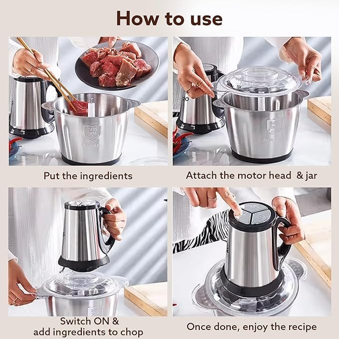 خردکن قدرتنمد با 6 تیغه طلایی پرسی ، موتور مسی قدرتمند 300 وات و بدنه مستحکم، به راحتی نیازهای هر کدبانوی ایرانی به یک خردکن قابل اعتماد را برطرف میسازد. با این خردکن، به راحتی گوشت و سبزیجات خود را برای فراهمردن یک وعده دلچسب اماده کنید.