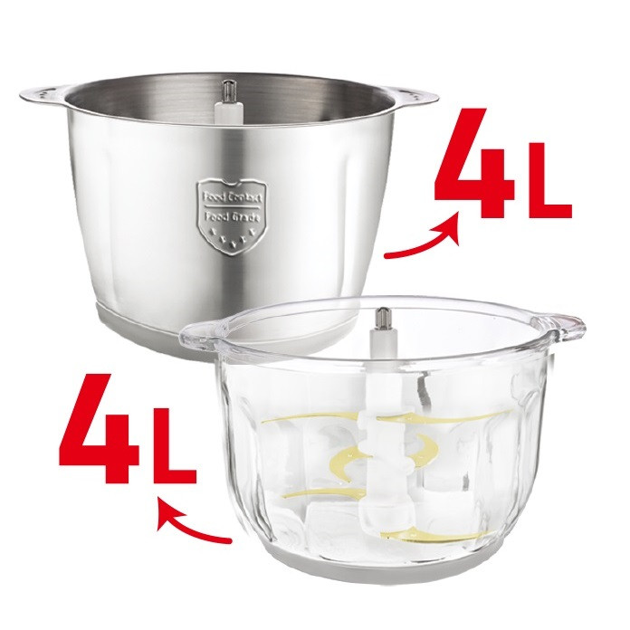 - سایر توضیحات: • ظرفیت کلی ۸ لیتر (۴ لیتر شیشهای – ۴ لیتر فلزی) • ۲ تیغه تیتانیومی با ۶ تیغه • تنظیم سرعت در ۳ مرحله • بدنه استیل ضد زنگ • پایههای ضد لغزش • توان: ۵۰۰ وات