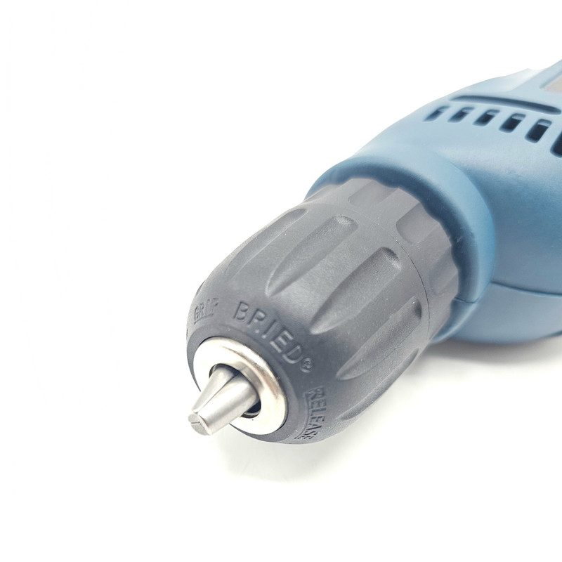 گر قصد تهیهی یک دریل مناسب با قدرتی قابل قبول دارید، میتوانید از دستگاه فوق استفاده کنید که مناسب برای مونتاژ ام دی اف در اشپزخانه و کلیه کارهای کناف کاری و همچنین استفاده شخصی در منزل و یا محیط کار می توان به ان اشاره کرد این دریل از توانی برابر 450~750 وات برخوردار است و از قابلیت کنترل سرعت گردش سود میبرد. میزان سرعت گردش این دستگاه توسط کلیدی چرخشی که روی شستی قرار دارد تنظیم میشود. بازهی سرعت چرخش این دستگاه 3000-0 دور بر دقیقه است. از دیگر مزایای این دستگاه میتوان به قابلیت چرخش ساعتگرد و پادساعتگرد آن اشاره کرد. سه نظام این دریل از نوع 10 میلیمتری اتوماتیک بوده و حداکثر قطر سوراخکاری آن در چوب، فلز و مصالح به ترتیب برابر 10، 10 و 10 میلیمتر است. با کمک این دستگاه میتوانید با دقت و تسلط بیشتری به کار خود بپردازید که این ویژگی به دلیل وجود دستهی کمکی و قفل سوییچ این دریل حاصل شده است. یکی دیگه از مزایای خرید این دریل تضمین کیفیت بالای ان است از ویژگیهای منحصر بفرد این دستگاه می توان به سبک بودن و خوش دست بودن ان است درضمن این دستگاه یکی از کوچک ترین دریل های با کیفیت بازار است که می توان در ارتفاع بالا انرا با گیره کمری که در ان تعبیه شده به کمر خود اویزان کرد در ضمن این دستگاه بدلیل رنگ زیبا خود یکی از دریل های محبوب و مورد پسند خانمها بشمار میرود که می توان از ان به عنوان ابزار داخل جهیزیه تازه عروسها رونمای کرد.