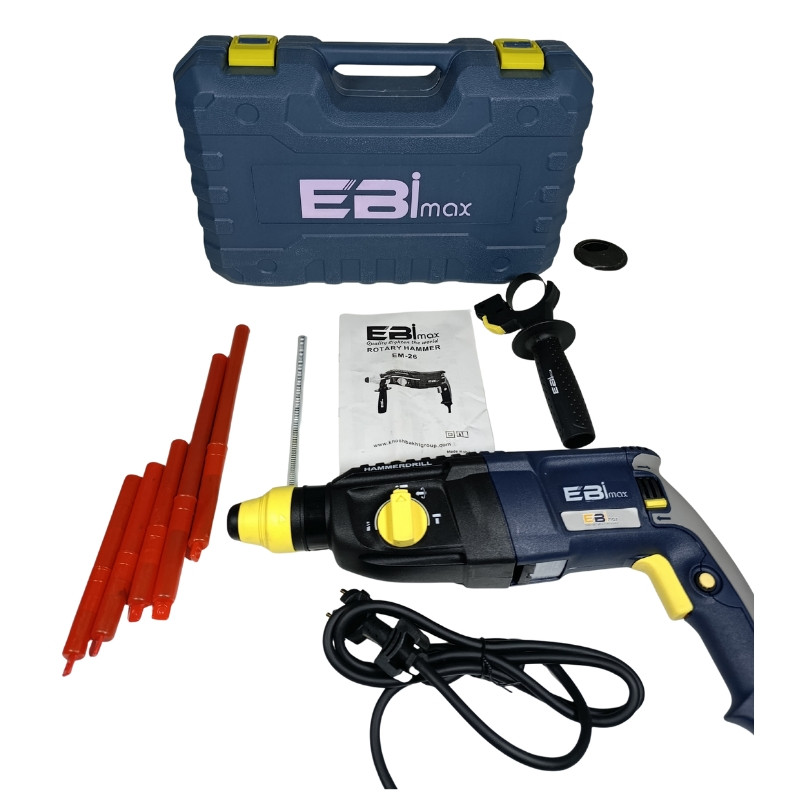 دریل چکشی بتنکن 3 کاره ابی مکس مدل EM-26 ، قدرت ، دوام و راحتی در یک ابزار حرفهای با موتور قدرتمند 850 وات ، طراحی شده تا در شرایط سخت کاری عملکردی مطمئن ارائه دهد . این دستگاه با قابلیت سوراخکاری چکشی ، تخریب سبک و حفاری در بتن ، سنگ و مصالح ساختمانی ، انتخابی مناسب برای کارگاههای حرفهای و پروژههای خانگیست .