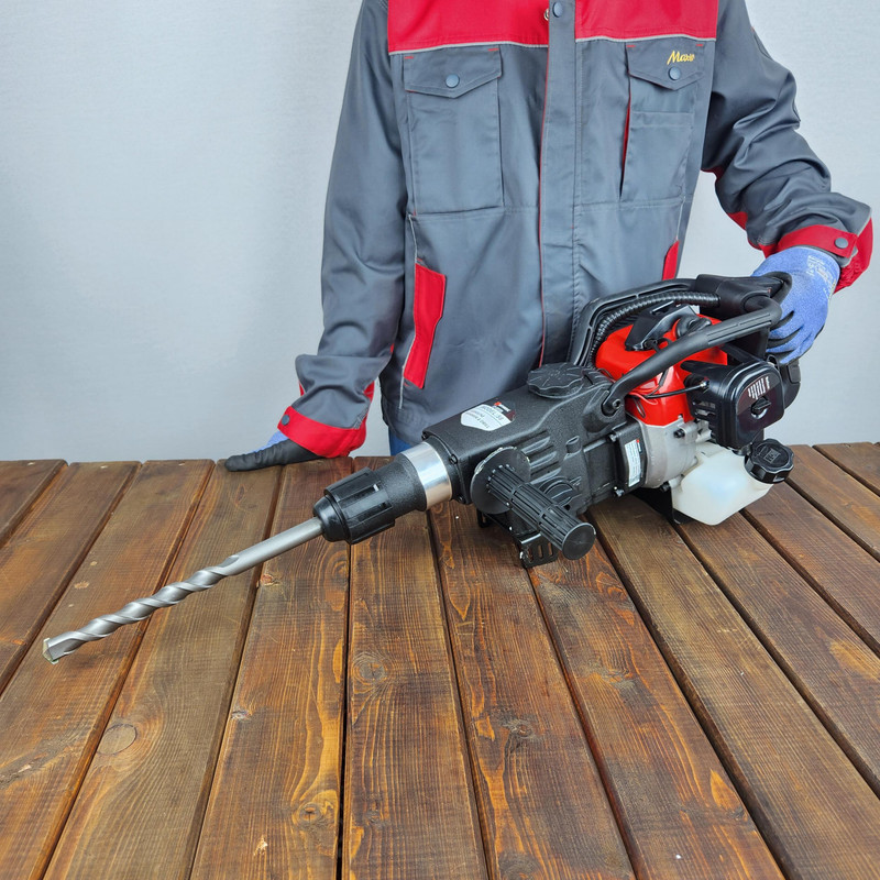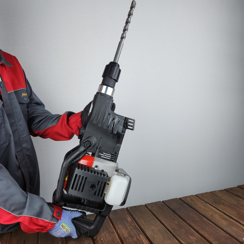 دستگاه موتور دو زمانه دارد. انرژی ضربه ای دستگاه 30 ژول می باشد. حجم موتور 32.7 سی سی می باشدمقدار مصرف بنزین متغیر می باشد و با کار نرمال نیم لیتر بر ساعت است. حداکثر قطر سوراخکاری 40 میلیمتر می باشد.سرعت چرخش 400 دور بر دقیقه میباشد.قدرت ضربه 11 کیلوگرم می باشد.وزن دستگاه 8 کیلوگرم می باشد قابلیت استفاده مته تا سایز 40 را دارد دارای عملکرد دو گانه (مته چکشی و قلم) می باشد اقلام همراه دو عدد قلم تخت و تیز، سه عدد مته پنج شیار می باشد ظرفیت مخزن سوخت 900 سی سی می باشد نسبت بنزین به روغن: 25 به 1 باید رعایت شود.