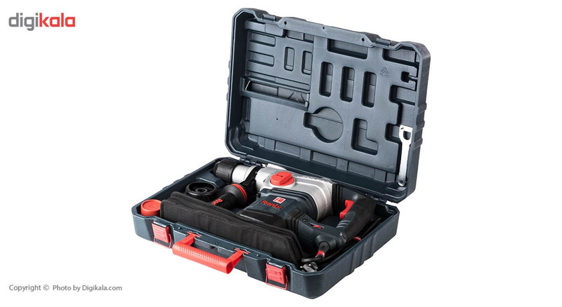 – دارای 2 عدد مته چکشی و 3 عدد مته چرخشی – دارای ابزار گیر پنج شیار – دارای درپوش غبار – دارای روکش قفل کن – دارای میله عمق سنج – دارای دسته جانبی – قدرت ضربه: 0 تا 10 ژول – دارای استاندراد Iso 9001: 2008 – مجهز به موتور پرقدرت 1250 وات با قابلیت تنظیم برای اجرای دو عملکرد مجزا (سوراخکاری چکشی و تخریب) -مجهز به گیربکس صنعتی ساخته شده از آلیاژ منیزیم سبک جهت بالا بردن اثربخشی عملکرد در کلیه مصارف -دارای دسته گردان 360 درجه آنتی شوک برای اعمال کنترل بیشتر روی حرکت دستگاه و استفاده آسان برای کاربر -مجهز به سیستم ضد لرزش دوگانه جهت کاهش خستگی افزایش راندمان -دارای سیستم منحصربفرد در قسمت محور چرخشی قلم‌گیر با بیشترین بازدهی دریل در حالت تخریب -دارای کلید و دیمر با کیفیت الکتریکی جهت تنظیم دقیق سرعت روی میزان دلخواه در حالت روشن -مجهز به سیستم پیشرفته کلاچ ایمنی جهت محافظت بیشتر از دست کاربر در هنگام استفاده روی سطوح بسیار متراکم -طراحی بدنه ارگونومیک و روکش لاستیکی بسیار نرم و ضد تعریق روی دسته برای سهولت در استفاده‌های طولانی مدت از دستگاه