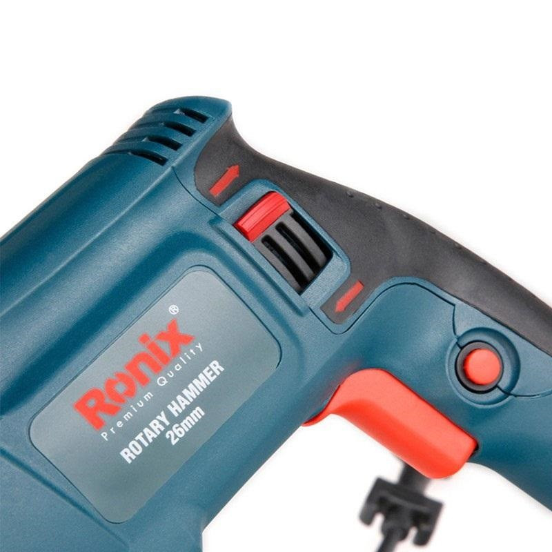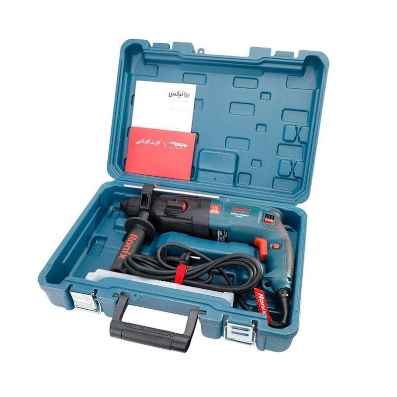 شرکت رونیکس Ronix با ارائه چندین مدل دریل بتن کن در کلاس ها و وزن های مختلف، انتخاب یک دریل بتن کن مناسب را برای مشتریان راحت تر کرده است. دستگاه پیش روی شما که جزو سبک ترین مدل های بتن کن و مناسب کارهای نصب در پروژه های ساختمانی میباشد مدل 2701 رونیکس است و با وزن 2.6 کیلوگرم و ابعاد 38 × 21 × 8 سانتیمتر، یک دریل بتن کن ضربهای با قدرت 800 وات است. سرعت این دریل در حالت بی باری تا 1100 دور بر دقیقه میرسد و دارای قابلیت کنترل سرعت است. این دستگاه هم برای مصارف خانگی و هم برای استفاده در کارگاههای ساختمانی و صنعتی بسیار مناسب است. این دریل توانایی سوراخکاری در چوب، فلز و بتون را دارد و حداکثر قطر سوراخ در این دستگاه در چوب، فلز و مصالح، به ترتیب 30، 13 و 26 میلیمتر است و برای تعویض مته نیازی به آچار ندارد و با ضامن موجود در گلویی دستگاه به سادگی انجام پذیر است. بتن کن 2701 از متریال درجه 1 و تحت استانداردهای روز اروپا توسط شرکت خوش نام رونیکس ساخته و به بازار ارائه گردیده است. از دیگر مزایای این دستگاه کلید چپ گرد راستگرد آن است که در انتهای دستگاه به گونه ای تعبیه گردیده که به سهولت از دو طرف دستگاه قابل تغییر است. .علاوه بر این، برخلاف مدلهای دیگر که کلید چپگرد راستگرد آنها روی شاسی دستگاه نصب شده است از مقاومت بالایی برخوردار است.