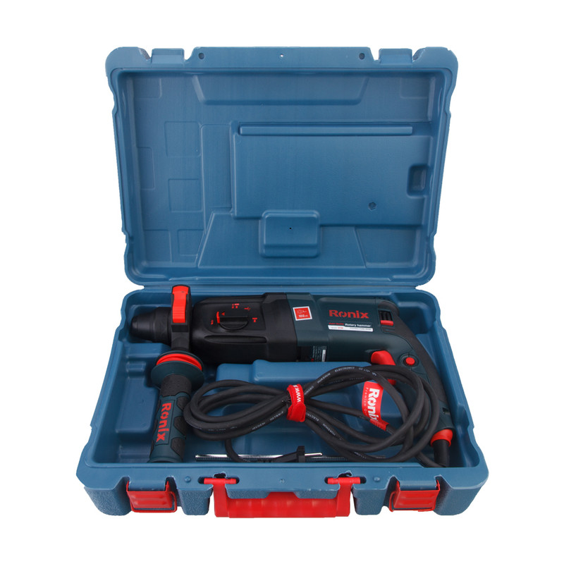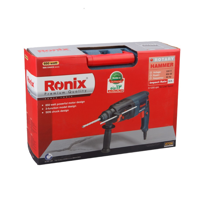شرکت رونیکس Ronix با ارائه چندین مدل دریل بتن کن در کلاس ها و وزن های مختلف، انتخاب یک دریل بتن کن مناسب را برای مشتریان راحت تر کرده است. دستگاه پیش روی شما که جزو سبک ترین مدل های بتن کن و مناسب کارهای نصب در پروژه های ساختمانی میباشد مدل 2726 رونیکس است و با وزن 3 کیلوگرم و ابعاد 41 × 28 × 12 سانتیمتر، یک دریل بتن کن ضربهای با قدرت 850 وات است که در کلاس خود جزو قویترینهاست. سرعت این دریل در حالت بی باری تا 1200 دور بر دقیقه میرسد و دارای قابلیت کنترل سرعت است. این دستگاه هم برای مصارف خانگی و هم برای استفاده در کارگاههای ساختمانی و صنعتی بسیار مناسب است. این دریل توانایی سوراخکاری در چوب، فلز و بتون را دارد و حداکثر قطر سوراخ در این دستگاه در چوب، فلز و مصالح، به ترتیب 30، 13 و 26 میلیمتر است و برای تعویض مته نیازی به آچار ندارد و با ضامن موجود در گلویی دستگاه به سادگی انجام پذیر است. بتن کن 2726 از متریال درجه 1 و تحت استانداردهای روز اروپا توسط شرکت خوش نام رونیکس ساخته و به بازار ارائه گردیده است. از دیگر مزایای این دستگاه کلید چپ گرد راستگرد آن است که در انتهای دستگاه به گونه ای تعبیه گردیده که به سهولت از دو طرف دستگاه قابل تغییر است. .علاوه بر این، برخلاف مدلهای دیگر که کلید چپگرد راستگرد آنها روی شاسی دستگاه نصب شده است از مقاومت بالایی برخوردار است. علاوه بر این 2726 دارای دسته آنتی شوک نیز میباشد که از انتقال لرزش و ضربات به کاربر در حین کار جلوگیری به عمل می آورد.