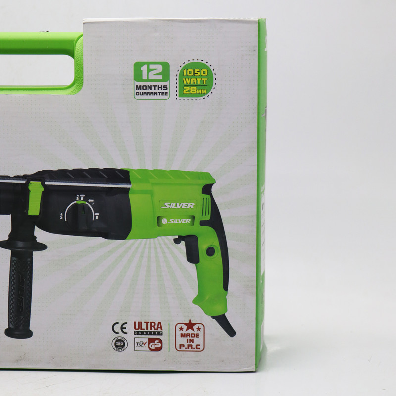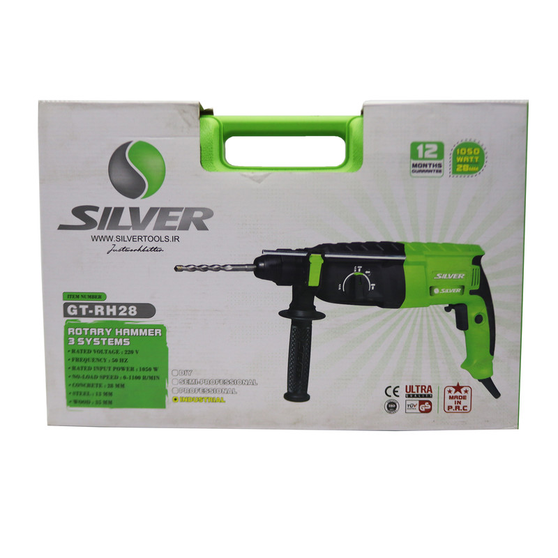 بتن کن سیلور GT-RH28 ساخته شده از بهترین قطعات با توان 1050 وات است. دستگاه بتن کن دارای سه حالت سوراخ کاری، چکشی و سوراخ کاری و چکشی است که با توجه به کلیدی که برای آن تعبیه شده می توان در هر سه حالت از آن استفاده کرد. همچنین این بتن کن دارای سیستم مته گیر 4 شیار می باشد. با طراحی منحصر به فرد کروی در قسمت محافظ کابل است که دوام دستگاه را بیشتر خواهد کرد. در ساخت این بتن کن از بلبرینگ ضد گرد و غبار استفاده شده تا در هر شرایطی بتوان از آن به راحتی استفاده نمود.