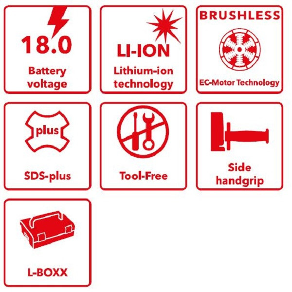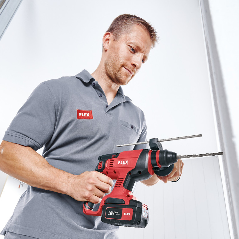 دستگاه CHE 18.0-EC یک دریل بتن کن حرفه ای از محصولات شرکت «فلکس» (Flex) با بیش از 100 سال سابقه و مخترع سنگ فرز می باشد.این ابزار با انرژی 1.7 ژول دارای سیستم مدیریت الکترونیکی (EMS) جهت محافظت از دستگاه و افزایش عمر ابزار می باشد. از دیگر مزایای این ابزار موتور براشلس فلکس، راندمان بالاتر موتور، مصرف انرژی کمتر و گیربکس مقاوم و ساخته شده از آلومینیوم دایکست میباشد..این دستگاه دارای کلید چهارحالته است که قابل تنظیم در حالت های سوراخکاری، سوراخکاری چکشی ، بتن کن و تنظیم زاویه قلم (CHISEL) میباشد..سرعت بدون بار این ابزار 1400-0 دور در دقیقه و نرخ ضربه آن 4500-0 ضربه در دقیقه می باشد. ابزار گیر این دستگاه SDS-plus (چهار شیاره) است. وزن این دستگاه با احتساب باتری تنها 2.5 کیلوگرم بوده و انرژی مورد نیاز خود را از باتری لیتیومی 18 ولت با ظرفیت 2.5 آمپر ساعت تامین می کند. داخل کیف بسیار محکم L-BOXX238 این ابزار 2 عدد باتری لیتیومی 18 ولت با ظرفیت 2.5 آمپرساعت و یک عدد شارژر سریع به همراه محدود کننده عمق و یک دسته کمکی وجود دارد. شرکت فلکس در سال 1922 در منطقه Bad Cannstatt نزدیک اشتوتگارت آلمان توسط Ackermann و Schmitt تاسیس گردید. در همان سال سنگ فرز MS6 با شفت Flexible و در سال 1954 اولین سنگ فرز سرعت بالای دنیا تحت عنوان DL9 توسط شرکت فلکس اختراع شد. هم اکنون شرکت فلکس معروفترین و معتبرترین تولید کننده پولیشر برقی و شارژی محسوب گردیده و تخصص آن تولید انواع ابزارآلات برقی و شارژی در صنایع خودرو، کار با فلزات، پرداخت سنگ و ابزارآلات مرتبط با ساخت و ساز و بازسازی می باشد.