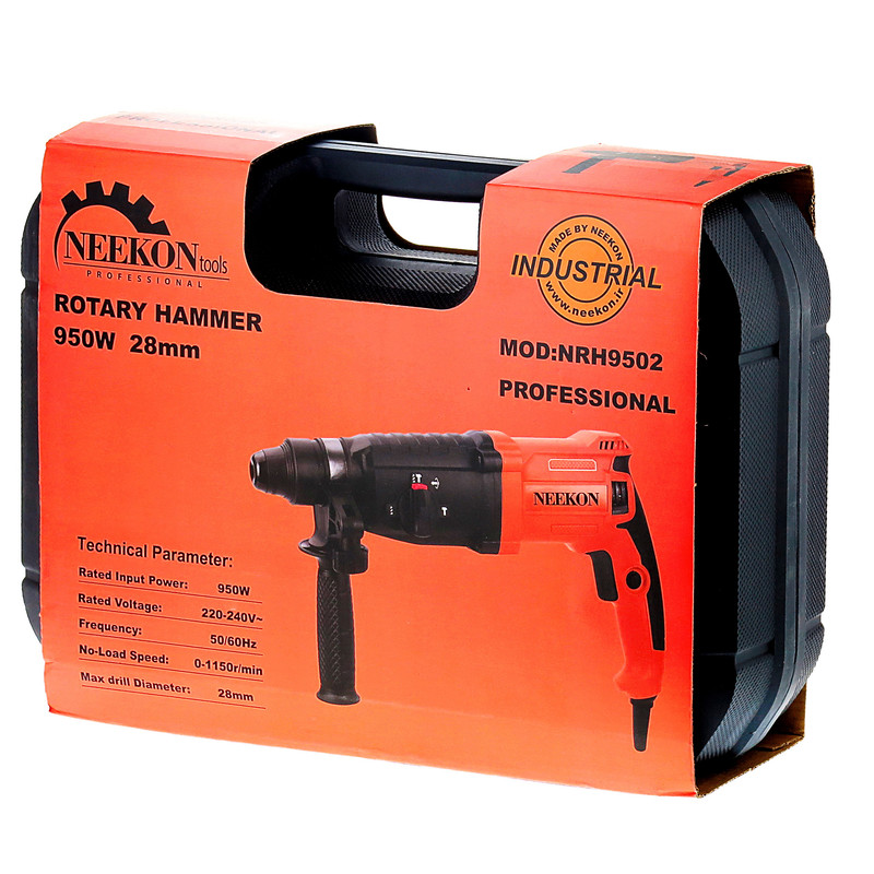 دریل بتن کن نیکون مدل NRH9502 مدل یک بتن کن 3 کاره 950 واتی 3 کیلویی است که اگر شما قصد خرید یک بتن کن را دارید و تصمیم به پیدا کردن یک دستگاه با کیفیت و قیمت مناسب را داشته باشید پیشنهاد تیم کارشناسان فنی ابزار باطن به شما دریل بتن کن نیکون مدل NRH9502 میباشد اگر بخواهیم به بررسی مشخصات فنی این دستگاه بپردازیم باید در ابتدا به موتور پر قدرت 950 واتی آن از جنس 100 درصد مس آن اشاره کنیم که قدرت بینظیری به دستگاه برای سوراخکاری و کندن بتن میدهد.سرعت گردش آزاد این دستگاه برابر است با 0-1150 دور در دقیقه میباشد و مشخصات سه نظام این دستگاه نیز یک سه نظام چهارشیار 28 میلی متری است و ولتاژ کاری آن برابر است 220-240 ولت و فرکانس کاری آن برابر است با 50-80 هرتز بر روی بدنه این دستگاه نیز علاوه بر یک دکمه تعویض حالت 3 حالته مجهز به یک دکمه چپگرد و راستگرد و دکمه قفل کن سوییچ میباشد به همراه این محصول به عنوان اقلام همراه یک عدد دسته کمکی یک عدد خطکش سوراخکاری یک جفتت زغال 3 عدد مته چهارشیار 2 عدد قلم چهارشیار همگی در کیف قابل حمل BMC آن قرار داده شده است شما میتوانید برای بررسی بیشتر مشخصات این محصول به ابزار باطن مراجعه کنید