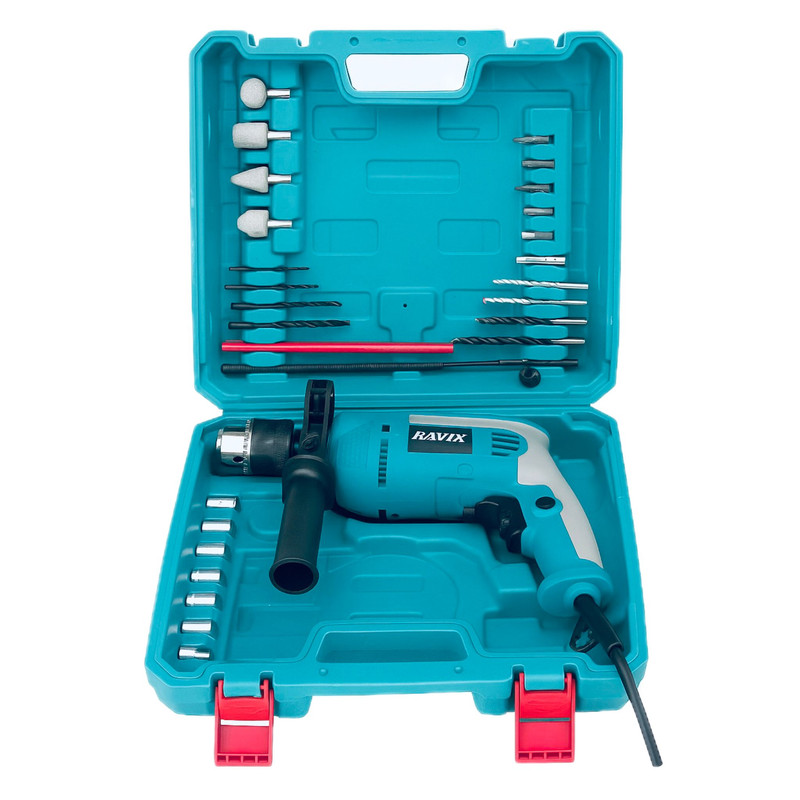 | سایر توضیحات | – دارای 2 عدد مته چکشی و 3 عدد مته چرخشی – دارای ابزار گیر پنج شیار – دارای درپوش غبار – دارای روکش قفل کن – دارای میله عمق سنج – دارای دسته جانبی |