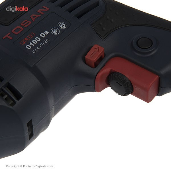 محصولی که می‌بینید، یک دریل برقی تولید شرکتی ایرانی است. این دریل تمامی مشخصات یک دریل ساده را دارد. این محصول با طراحی ارگونومیک ساخته ‌شده و به یک موتور قدرتمند مجهز است. قابلیت تنظیم سرعت دوران موتور برای این دستگاه وجود دارد. با استفاده از این محصول، سرعت‌عمل شما برای سوراخ‌کاری اجسام مختلف قابل‌قبول است. مدل 0100Da یکی از دریل‌های برقی است که شرکت «توسن» (Tosan) تولید می‌کند. این محصول یک دریل معمولی با موتوری قدرتمند است. موتور این دستگاه با توان 400 وات کار می‌کند. حداکثر سرعت گردش این محصول در حالت آزاد، به 2700 دوربردقیقه می‌رسد. سه‌نظام به‌کاررفته در ساخت این دستگاه از نوع خودکار است و شما برای تعویض مته به آچار نیازی پیدا نمی‌کنید. این ویژگی، سرعت‌عمل شما را در انجام سوراخ‌کاری‌های متعدد بالا می‌برد. در نظر داشته باشید که حداکثر قطر مته‌ای که در سه‌نظام این محصول قرار می‌گیرد، 10 میلی‌متر است. از این دریل برقی در مصارف خانگی و تجاری استفاده‌ی فراوانی می‌شود.