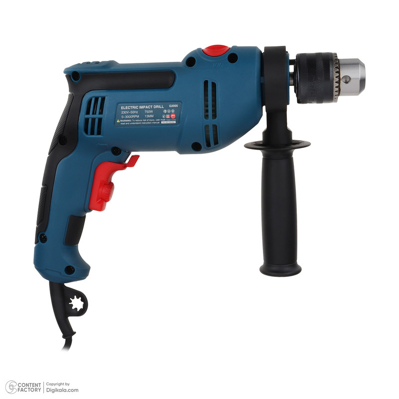 | سایر توضیحات | توان: 750 وات سرعت در حالت بی باری: 3000 دور در دقیقه حداکثر قطر سوراخ کاری در بتن و فلز: 13 میلیمتر حداکثر قطر سوراخ کاری در چوب: 20 میلیمتر قطر سه نظام: 13 میلیمتر وزن دستگاه: 2 کیلوگرم |