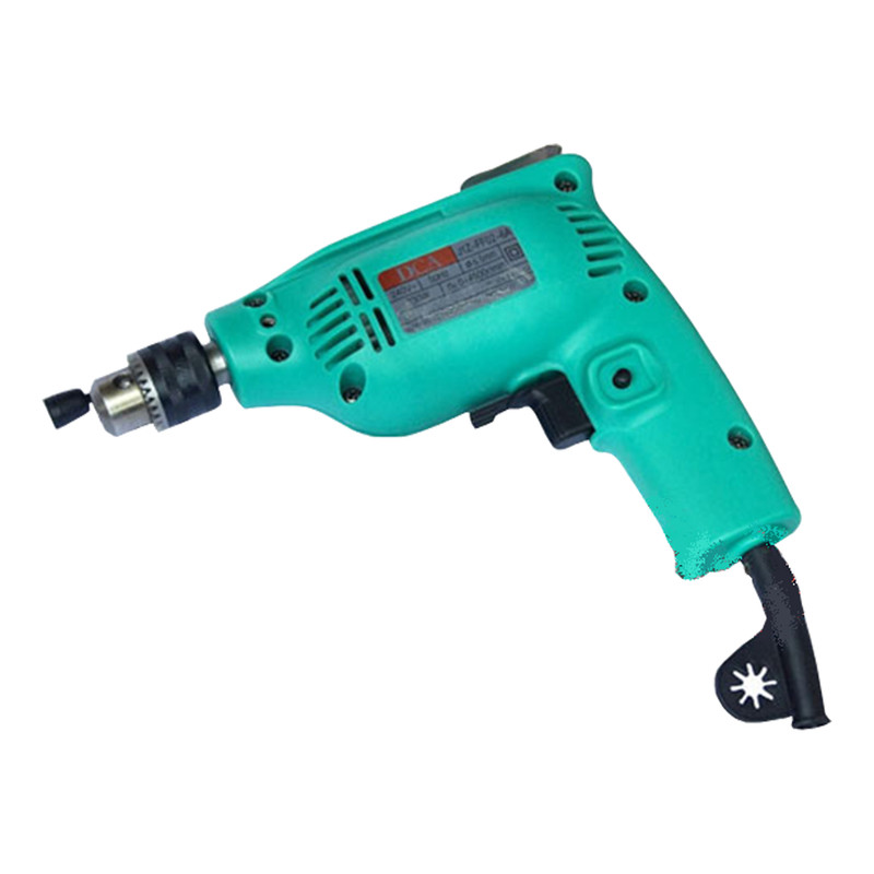 دریل برقی وسیله‌ای است که با حرکت دورانی سریع، برای سوراخ‌کردن چوب، فلزات، بتن و… استفاده می‌شود. این حرکت دورانی توسط موتور دریل صورت می‌گیرد و مقدار قدرت و سرعت حرکت دورانی در دریل‌ها متفاوت است. همچنین با استفاده از انواع مته‌های متناسب با قطعه‌ی موردنظر، می‌توان عمل سوراخ‌کاری را انجام داد. «دریل برقی دی سی ای مدل AJZ02-6A» دارای موتور 230 وات است که به‌طور عمده، جهت کاربری خانگی و برای سوراخ‌کاری چوب و آهن استفاده می‌شود. تمامی قسمت‌های موتور این دریل از قبیل آرمیچر و بالشتک با استفاده از دستگاه‌های تمام‌اتوماتیک منطبق با آخرین فناوری روز دنیا تولید شده است تا عمر مفید دستگاه به حداکثر برسد. طراحی ارگونومیک بدنه‌ی این دستگاه عامل خوش‌دستی آن و درنتیجه راحتی کاربر است. دریل برقی دی سی ای مدل AJZ02-6A کلید الکترونیکی دیمردار (برای تنظیم مقدار گردش سه‌نظام) دارد تا بتوان با توجه به نیاز، قدرت چرخش سه‌نظام را تنظیم کرد. همچنین این دریل دارای دکمه‌ی چپ‌گرد و راست‌گرد است که برای دریل‌کاری در حالت چپ‌گرد و راست‌گرد استفاده می‌شود. وجود قفل‌کن کلید نیز از دیگر خصوصیات این دریل جهت راحتی کاربر هنگام استفاده‌ی طولانی‌مدت و مداوم است. با اعمال عملیات گرمایشی استاندارد و سخت‌کاری روی دنده‌های این دریل، همواره سعی شده دنده‌ها تقویت شوند و عمر دنده‌ها افزایش یابد.