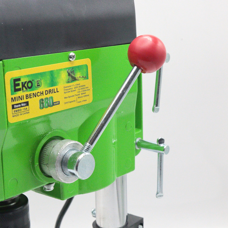 دریل ستونی 13میلیمتری 680 وات اکو به صورت عمودی بر روی میز و یا بر روی زمین کارگاه های نجاری و کارخانه های صنعتی قرار می گیرند. توان این دریل 680وات بوده است .دریل های ستونی همانند دریل های دستی قادرند با مته های مختلف کار کنند و سوراخ هایی با قطرهای متفاوت ایجاد نمایند. طراحی این ابزار برقی به گونه ای است که در هنگام سوراخ کاری های دقیق نیازی به وارد کردن قدرت بالای دست ندارد و خود از دقت و قدرت مناسبی در سوراخ کاری برخوردار است. در واقع می توان گفت دقت و قدرت بالا از ویژگی های بارز و مهم دریل ستونی است. دریل ستونی کاربردهای زیادی دارد که ممکن است تا به حال به ذهنتان نرسیده باشد. به عنوان مثال در هنگام ساخت یک چوب لباسی نیاز به یک دریل ستونی است تا بتوان به صورت دقیق تخته را برای نصب چنگک های جا لباسی سوراخ کاری کرد. همچنین به کمک یک دریل ستونی می توانید در ساخت یک کمد لولا های آن را با دقت بیشتری ایجاد کنید.