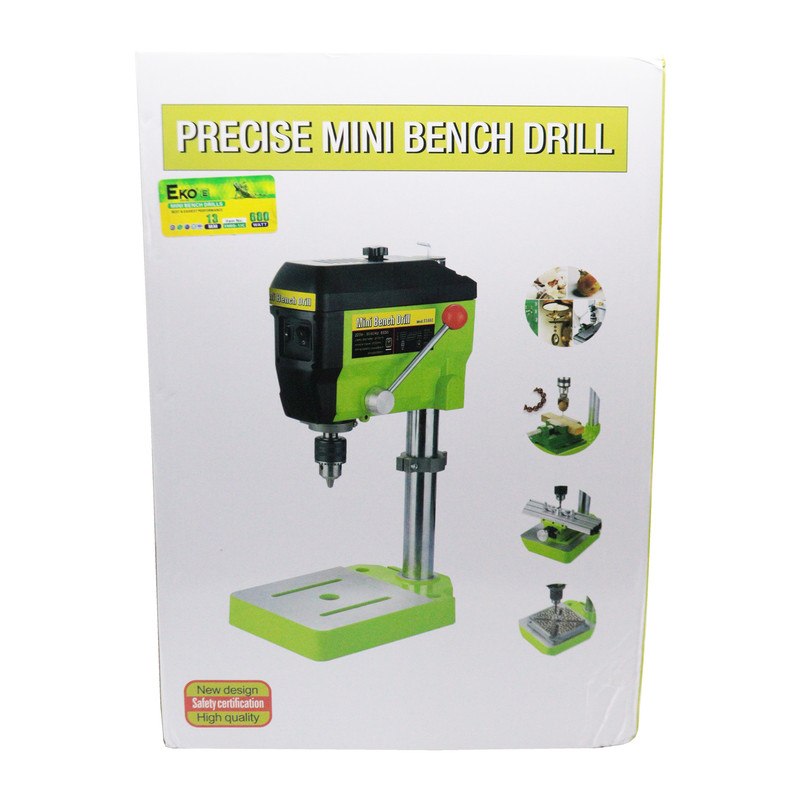 دریل ستونی 680 وات اکو به صورت عمودی بر روی میز و یا بر روی زمین کارگاه های نجاری و کارخانه های صنعتی قرار می گیرند. توان این دریل 680 وات بوده است .دریل های ستونی همانند دریل های دستی قادرند با مته های مختلف کار کنند و سوراخ هایی با قطرهای متفاوت ایجاد نمایند. طراحی این ابزار برقی به گونه ای است که در هنگام سوراخ کاری های دقیق نیازی به وارد کردن قدرت بالای دست ندارد و خود از دقت و قدرت مناسبی در سوراخ کاری برخوردار است. در واقع می توان گفت دقت و قدرت بالا از ویژگی های بارز و مهم دریل ستونی است. دریل ستونی کاربردهای زیادی دارد که ممکن است تا به حال به ذهنتان نرسیده باشد. به عنوان مثال در هنگام ساخت یک چوب لباسی نیاز به یک دریل ستونی است تا بتوان به صورت دقیق تخته را برای نصب چنگک های جا لباسی سوراخ کاری کرد. همچنین به کمک یک دریل ستونی می توانید در ساخت یک کمد لولا های آن را با دقت بیشتری ایجاد کنید.