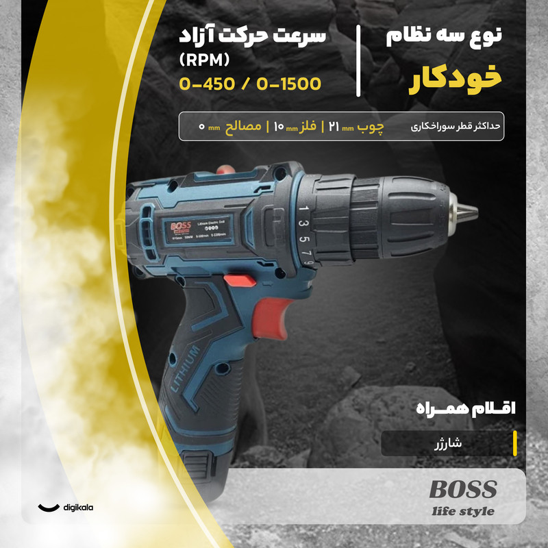 - ویژگیهای دریل: سیستم گردش تکجهت، سیستم گردش چپگرد، سیستم گردش راستگرد، قابلیت کنترل سرعت، قفل سوییچ