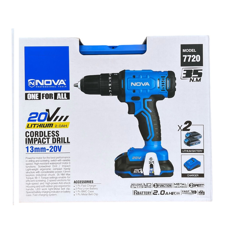دریل‌های شارژی به دلیل ویژگی‌های منحصر به فرد خود، به یکی از ابزارهای پرکاربرد در صنایع مختلف و حتی مصارف خانگی تبدیل شده‌اند. با توجه به نیاز روزافزون به ابزارهایی که قابلیت حمل و نقل آسان، قدرت بالا و عملکرد چندکاره داشته باشند، دریل‌های شارژی به انتخاب اول بسیاری از حرفه‌ای‌ها تبدیل شده‌اند. دریل شارژی 13 میلیمتری 20 ولت مدل 7720 نووا ، یک ابزار حرفه‌ای و قدرتمند می باشد که برای استفاده‌های طولانی مدت و کارهای سنگین طراحی شده است. این دریل با موتور قدرتمند 20 ولتی، توانایی بالایی در سوراخ‌کاری و پیچ‌بندی در سطوح مختلف مانند چوب، فلز و پلاستیک دارد. این دستگاه به گونه‌ای طراحی شده که در شرایط کاری پرفشار عملکرد بهینه داشته باشد. سه‌نظام اتوماتیک صنعتی 13 میلیمتری آن، امکان تعویض سریع مته‌ها را فراهم می‌کند و سیستم کلاچ 19 حالته، کنترل دقیق‌تری در هنگام کار با پیچ‌ها و سطوح مختلف به کاربر می‌دهد.