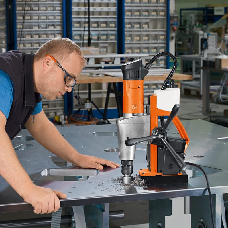 شماره فنی:72732761000-ساخت آلمان-توان ورودی:1200 وات-توان خروجی:610 وات-سرعت:دنده اول: 260 – 130 دنده دوم: 520 – 260 -ابزار گیر: MK3-حداکثر قطر سوراخکاری در فلز :50 میلیمتر-حداکثر قطر سوراخکاری در چوب 40 میلیمتر- حداکثر عمق گرد بری:50 میلیمتر (75 میلیمتر)- حداکثر قطر دریل کاری:23 میلیمتر نگهدارنده مته گرد بر: 3/4 اینچ ولدون- کورس: 145 میلیمتر -بازه کل کورس: 315 میلیمتر-طول کابل:4 متر-طراحی بسیار کم فرسایش با شلنگ محافظ کابل با نصب چرخشی برای استفاده سخت در صنعت و تجارت دستی. به لطف تغذیه مته کنترل شده دیجیتالی، در زمان و هزینه صرفه جویی می کند. تنظیم سرعت الکترونیکی و دامنه حرکت 315 میلی‌متر، این ابزار با قابلیت استفاده در کاربرد های مختلف مانند حفاری مغزه، دریل کاری، قلاویز زنی، فروکش کردن و باز کردن مجدد است. به لطف زمان‌های حفاری قابل تکرار و زمان‌بندی‌شده، می‌توان ساعات کاری برای کارهای سفارشی و سریالی را برنامه‌ریزی کرد.-موتور پرقدرت FEIN با سرعت پایدار. مفهوم عملیاتی ساده از اختلاط جلوگیری می کند و کاربر به وضوح می تواند آن را مشاهده کند.- نیروی نگهدارنده مغناطیسی بالا. -نمایشگر نیروی نگهدارنده مغناطیسی مناسب. -مخزن خنک کننده یکپارچه. -سنسور شیب. صرفه جویی در سرعت ;عملکرد حافظه; .سوئیچ ایمنی شخصی.- اقلام همراه با دستگاه: 1 × مخزن خنک کار – روان کار 1 × تسمه نگهدارنده 1 × قلاب پلیسه گیری 1 × پین مرکزی 1 × گارد محافظ 1 × گوه MT3 × کیف مخصوص