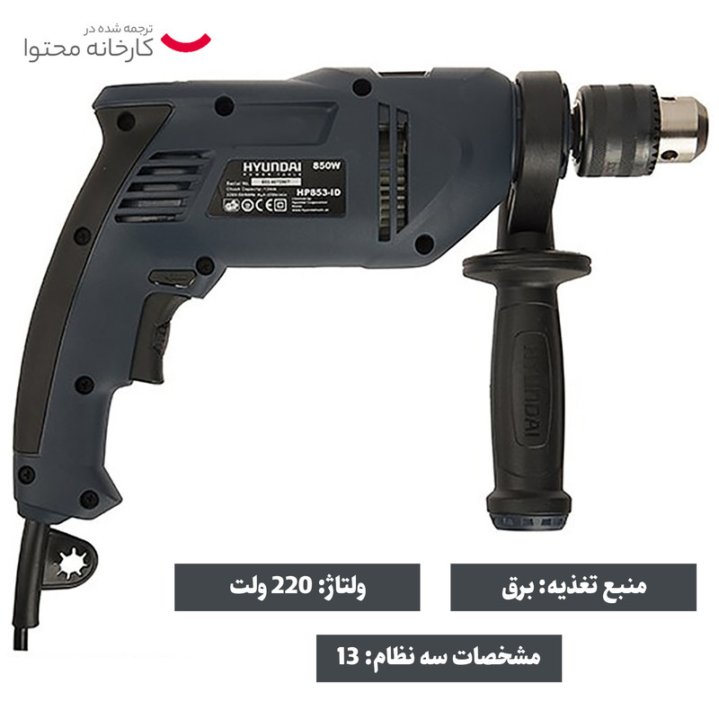 - ویژگیهای دریل: سیستم گردش چپگرد، سیستم گردش راستگرد، قابلیت کنترل سرعت، قفل سوییچ