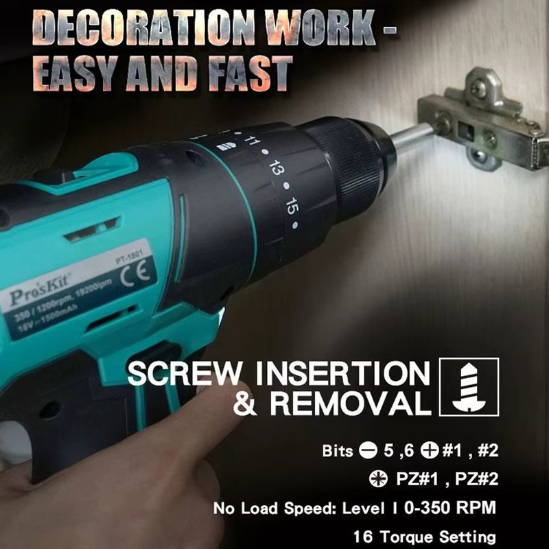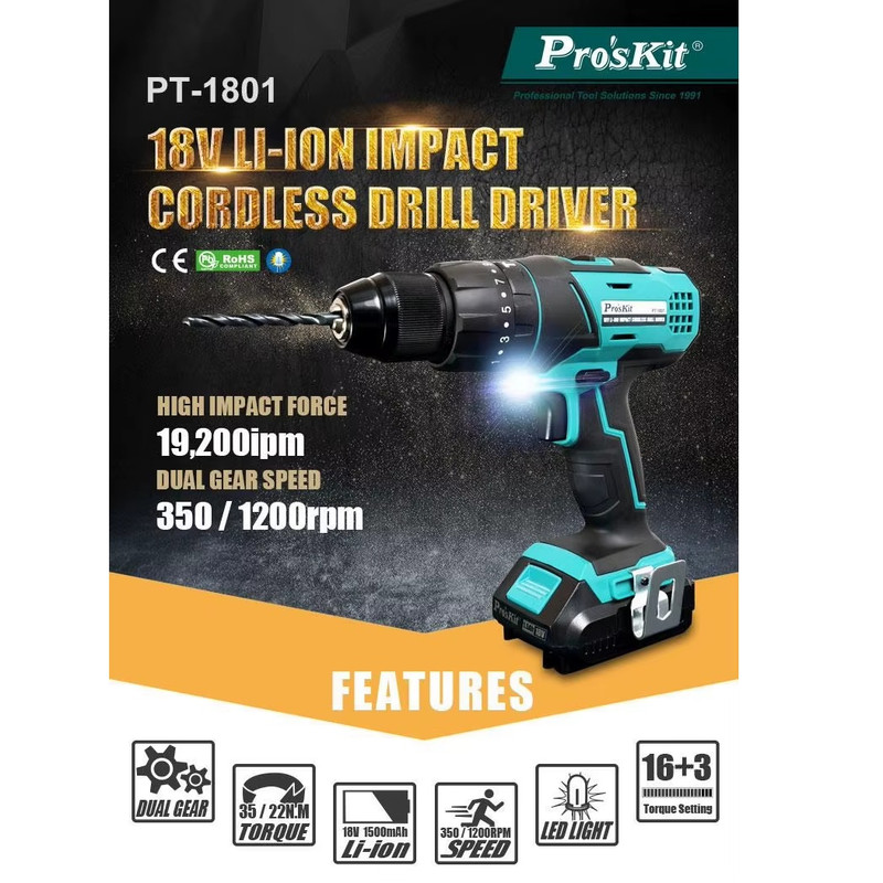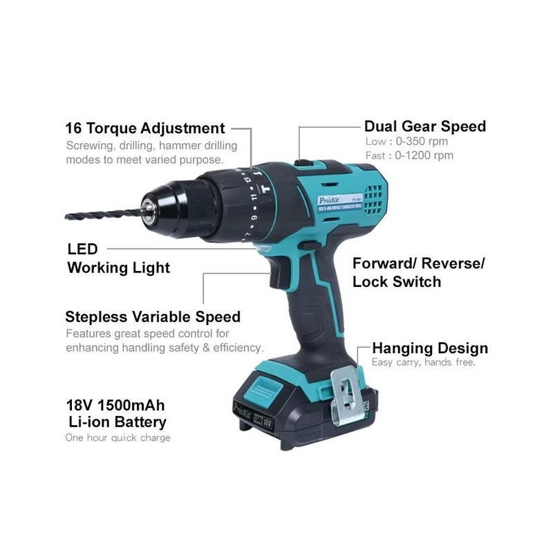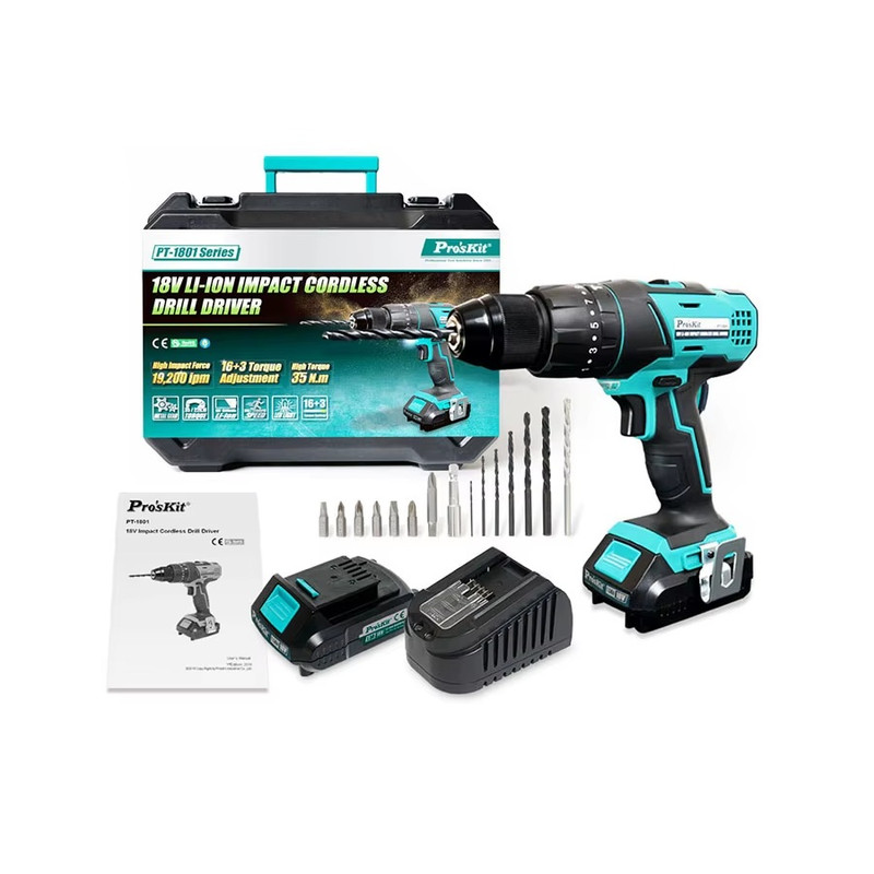 دریل پیچ‌گوشتی شارژی Pro’sKit PT-1801G یک ابزار قدرتمند و حرفه‌ای است که برای مصارف خانگی، فنی و نیمه‌صنعتی طراحی شده است. این مدل با بهره‌گیری از باتری لیتیوم-یون ۱۸ ولت و قابلیت‌های متنوع، انتخابی ایده‌آل برای کاربران حرفه‌ای و علاقه‌مندان به پروژه‌های DIY محسوب می‌شود.