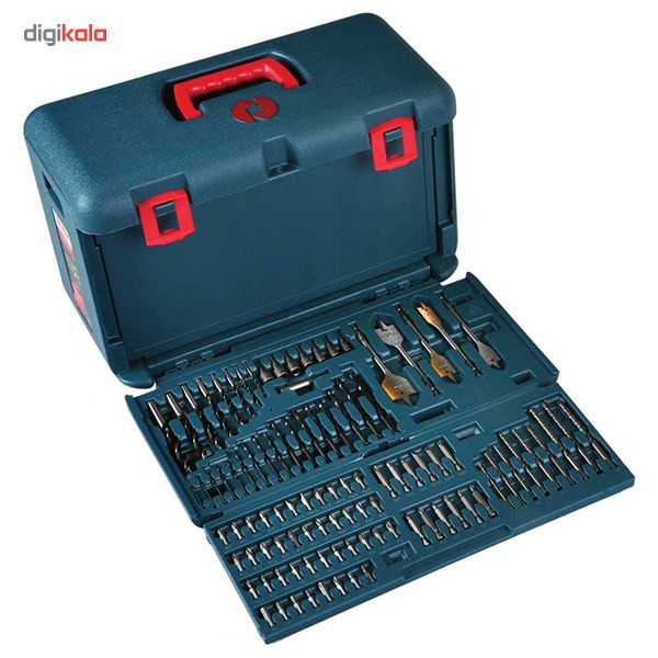 | مشخصات اقلام همراه | – دارای 100 قلم لوازم جانبی شامل: 1. متهها: 17 عدد متهی فلز در قطرهای (2×)2، 2.5، (2×)3، 3.5، (2×)4، 4.5، (2×)5، 5.5، (2×)6، 6.5، 7 و 8 میلیمتر 9 عدد متهی الماسه در قطرهای 4، 5، 5.5، (2×)6، 7، 8، 9 و 10 میلیمتر 8 عدد متهی چوب در قطرهای 3 تا 10 میلیمتر 5 عدد متهی پروانهای (برگی) در قطرهای 16، 20، 22، 25 و 32 میلیمتر 2. سریهای پیچگوشتی با طول 25 میلیمتر: 6 عدد سری دوسو در سایزهای SL8-10، Sl6-8 و SL10-12 هر کدام 2 عدد 9 عدد سری چهارسو در سایزهای PH2(×4)، PH1(×2) و PH3(×3) 10 عدد سری چهارسوی خاردار در سایزهای PZ2(×5)، PZ1(×2) و PZ3(×3) 9 عدد سری ستارهای در سایزهای T30، T25(×2)، T20(×3)، T15، T10 و T40 4 عدد سری آلنی در سایزهای 3 تا 6 میلیمتر 3. سریهای پیچگوشتی با طول 50 میلیمتر: 3 عدد سری دوسو در سایزهای SL8-10، Sl6-8 و SL10-12 3 عدد سری چهارسو در سایزهای PH2، PH1 و PH3 3 عدد سری چهارسوی خاردار در سایزهای PZ2، PZ1 و PZ3 3 عدد سری ستارهای در سایزهای T30، T25، T20 4. یک عدد اضافهشوندهی مغناطیسی 5. سری بکس: 4 عدد سری با استاندارد متریک در سایزهای 5، 6، 8 و 10 میلیمتر 3 عدد سری با استاندارد SAE در سایزهای 1/4، 5/16 و 3/8 اینچ |