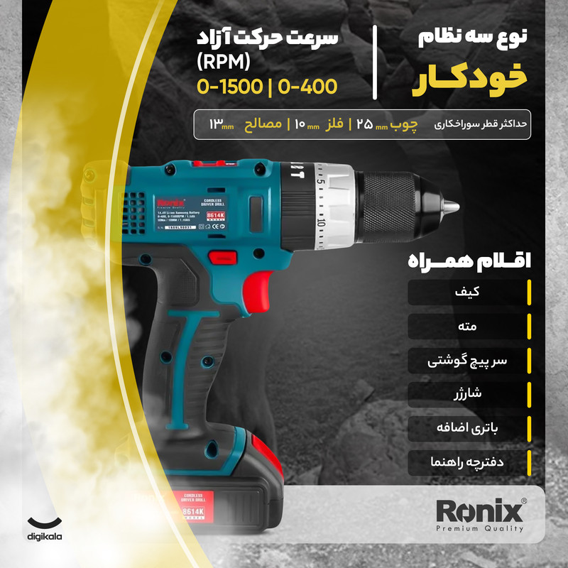 دریل پیچ گوشتی شارژی رونیکس مدل 8614K