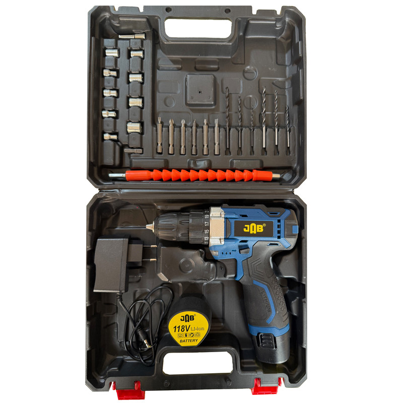 دریل پیچ گوشتی شارژی سه نظام 10 میلیمتری 118 ولت جاب مدل JB-118 Industrial Edition مجموعه 40 عددی