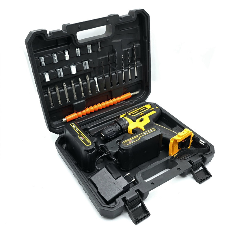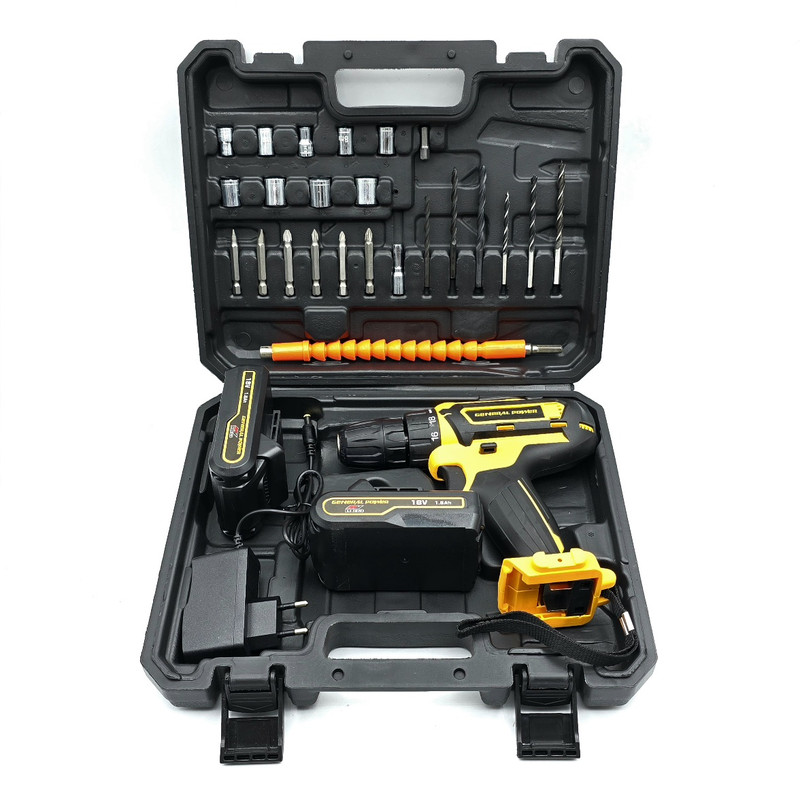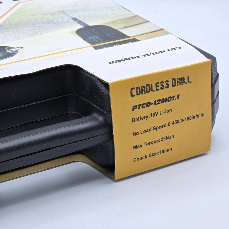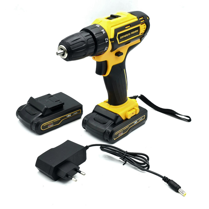 این محصول ساخت کشور چین می باشد که دارای ترک متر (هرزگرد) 18 پله ای و دارای 2 سرعت می باشد این محصول دارای کلید چپ گرد و راست گرد و نیز کلید گازی(با فشار دست سرعت کم و زیاد می شود ) می باشد همچنین باطری های این محصول 18 ولت کتابی بوده – این دریل دارای سه نظام 10 میلیمتر اتوماتیک می باشد – این دریل علاوه بر سوراخکاری این دریل قادر به انجام کارهای سخت مانند سوراخ‌کاری در فلزات، چوب و بتن است برای پولیش کاری هم قابل استفاده می باشد. دریلی قوی با قابلیت عملکرد در دو حالت مجزا، اعم از سوراخکاری و به عنوان پیچ‌ گوشتی شارژی می باشد – مجهز به موتوری بسیار قوی با عملکرد عالی و طول عمر بالا می باشد – دارای بدنه ‌ای ارگونومیک با استحکامی فوق ‌العاده می باشد -مجهز به کلاچ تنظیم دستگاه در گشتاورهای مختلف، برای جلوگیری از ورود آسیب به سطح کار می باشد – با قدرتی عالی و عملکردی بی‌ نظیر می باشد – قابل تنظیم دو دور سرعت (0 الی 450 و 0 الی 1800 دور بر دقیقه) متفاوت جهت استفاده بر سطوح مختلف را دارد – – دارای گیربکس فلزی مستحکم با طول عمر بالا جهت بهره ‌گیری در فعالیت ‌های پرفشار می باشد – دارای طراحی منحصر بفرد بدنه با روکشی از جنس رابر باکیفیت می باشد. قبل از استفاده باتری ها را به مدت 3 ساعت در شارژ قرار دهید