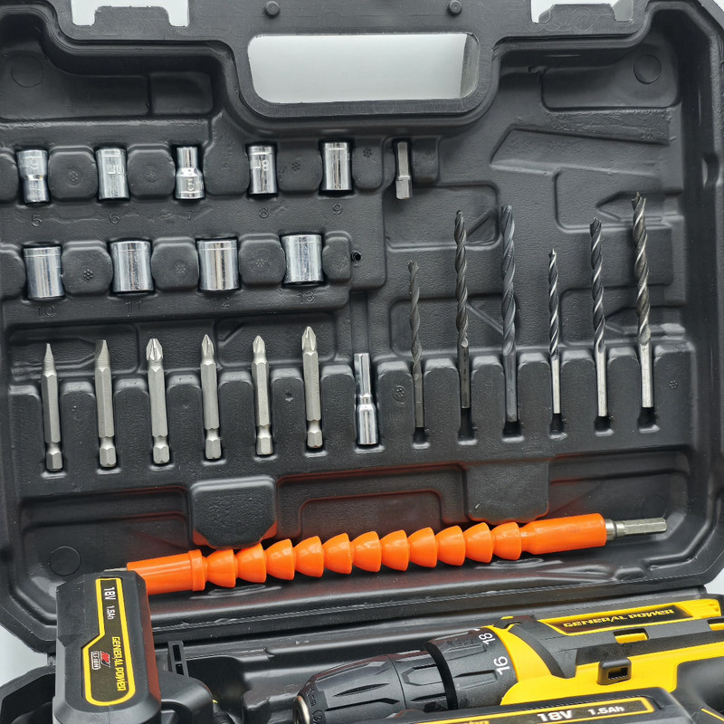 مشخصات دریل پیچگوشتی شارژی 18 ولت دو باتری با لوازم جنرال پاور: