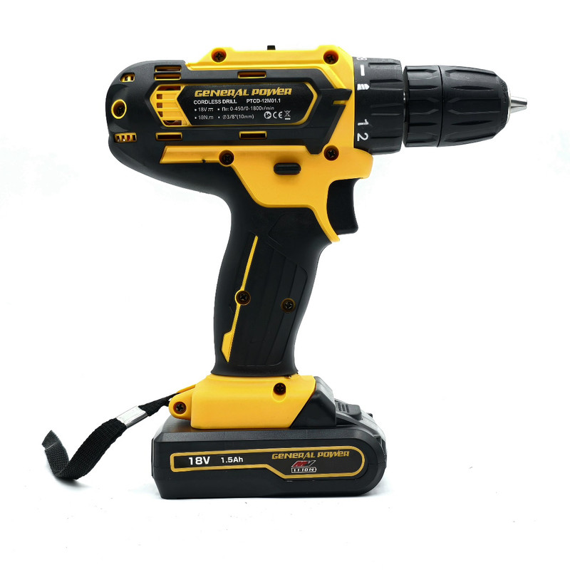 دریل پیچ گوشتی شارژی سه نظام 10 میلی متری 18 ولت جنرال پاور مدل 12M01.1