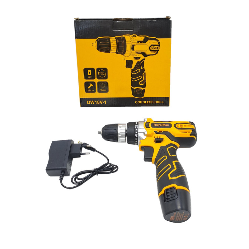 شرکت حرفه ای ابزار آلات برقی رویال مکس ; با تولید دریل پیچ گوشتی شارژی صنعتی مدل DW18V_1 قدرت خود را بر رخ رقیبان بزرگ کشید . این دستگاه جایگزین مناسبی برای پیچگوشتیهای معمولی است و موجب بالا رفتن سرعت کاربر در حین کار میشود و باید برای این منظور مجموعهای کامل از سریهای پیچگوشتی تهیه کنید. این محصول با توجه به سرعت چرخش بالایی که دارد، در حالت دریل نیز عملکرد خوبی خواهد داشت. سرعت این محصول قابلکنترل است و کاربر میتواند آن را در دو بازهی 0 تا 350 و 0 تا 1300دور بر دقیقه تنظیم کند. گشتاور این دریل پیچگوشتی نیز مانند سرعت آن قابلتنظیم است. میزان ترکمتر و هرزگرد این دستگاه قابل تنظیم است. این محصول دارای 1 باتری شارژی پرو کر با طول عمر بالا بوده که ولتاژی 18 ولتی و ظرفیتی 1500 میلیآمپرساعتی دارند. وجود سهنظام اتومات 10 میلی متری بسیار با کیفیت از دیگر مزایای این دستگاه است که موجب افزایش سرعت تعویض مته و سری پیچگوشتی میشود. تمام ویژگی های مثبت و کیفیت این دستگاه باعث شده که این دستگاه در نوع خود بی رقیب باشد.