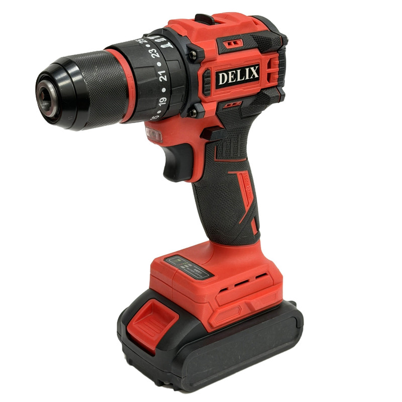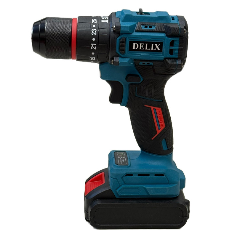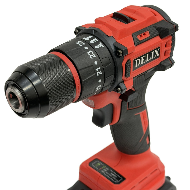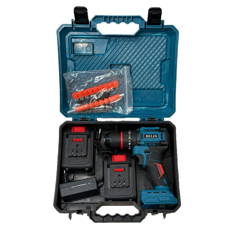 دریل پیچ گوشتی شارژی چکشی 13 میلیمتری 128 ولت دلیکس کد BRSH01 مجموعه 50 عددی