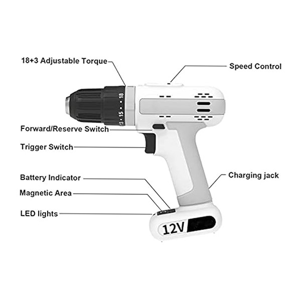 این دریل پیچ گوشتی دارای ۶ سایز مختلف مته و ۶ عدد سری پیچ گوشتی مختلف میباشد.