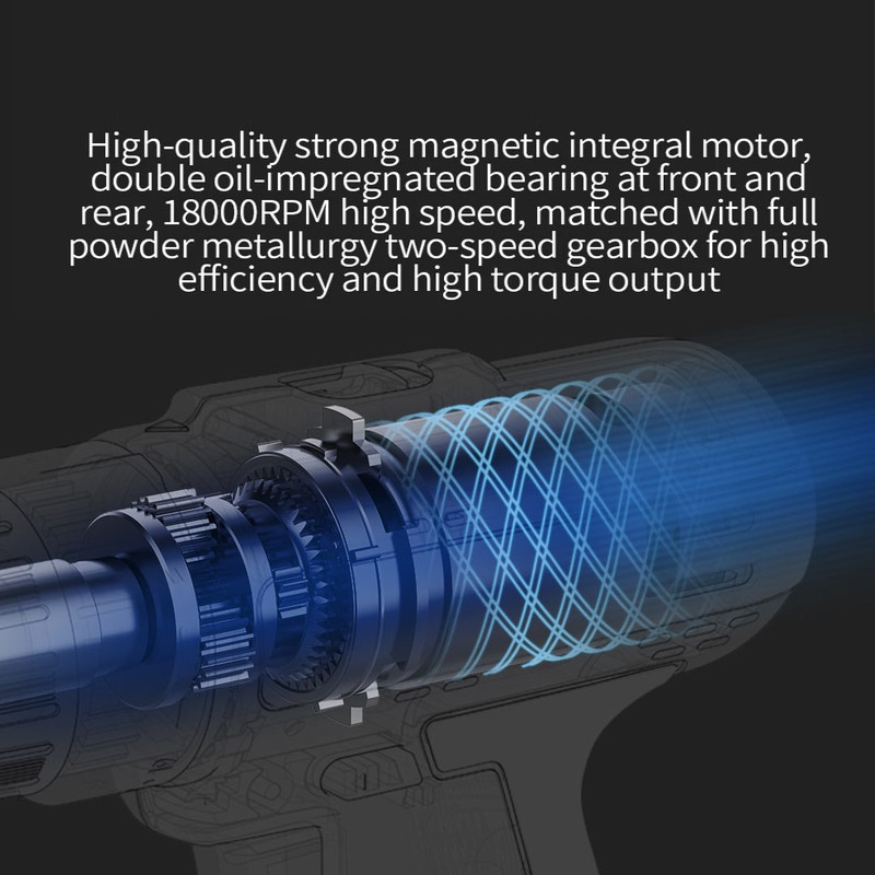 تنظیم گشتاور دریل در 19 سطح سرعتی قابل انجام است. حداکثر گشتاور 25 نیوتونی این دریل، میتواند چوب را برای 20 میلی متر، فولاد را برای 10 میلی متر حفاری کند. این نیروی حداکثری برای 90 سوراخ پی در پی پا بر جا خواهد بود.