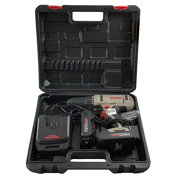 دریل شارژی کرون کد 1056 یک نوع از انواع دریلها به صورت شارژی و بدون سیم میباشد که از آن بیشتر به عنوان باز و بسته کردن انواع پیچها استفاده میشود و همچنین به عنوان سوراخکاریهای نیمه سنگین از جمله فلز، مصالح، چوب و … نیز مورد استفاده قرار میگیرد. دریل شارژی کرون دارای قابلیت سوراخکاری، قطر سوراخکاری در چوب 28 میلیمتر، قطر سوراخکاری در فولاد 20 میلیمتر میباشد. دریل پیچگوشتی شارژی کد 1056 دارای توانی معادل باتری 18 ولت بوده و بدنه آن برای راحتی استفاده کاربر و جلوگیری از خستگی زود هنگام، کاملاً به صورت ارگونومیک و دستهای پلاستیکی سبک طراحی شده است. این دریل پیچ گوشتی شارژی دارای قابلیت تنظیم جهت گردش به صورت چپگرد، راستگرد نیز میباشد. این دریل شارژی، دارای یک عدد باتری ليتيومی 18 ولت میباشد که مدت نگهداری شارژ به مراتب بیشتر و در صورت استفاده نکردن طولانیمدت دیرتر خالی میشود و این نکته را هم باید در مورد این باتریها اضافه کرد که هرچه ولتاژ باتری بيشتر باشد، حجم، گشتاور و قيمت دستگاه دریل شارژی شما نیز بالاتر خواهد رفت و دستگاه قابليت استفاده در كارهای سنگینتری را نیز خواهد داشت؛ و سرعت در حال آزاد این دریل شارژی 0-1400 دور در دقیقه خواهد بود.