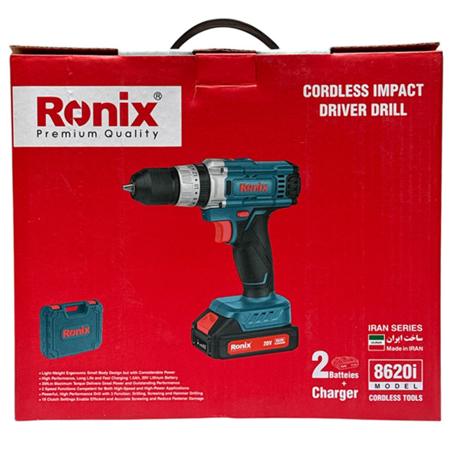 دریل پیچ گوشتی چکشی شارژی 8620i رونیکس، با موتور قدرتمند، گیربکس دو حالته، بدنهای کوچک، کمحجم و ارگونومیک، کیفیت ساخت بالا و مطابق با استانداردهای روز دنیا طراحی شده و نیازهای مختلف کاربران صنعتی را به بهترین شکل ممکن برآورده میکند.
