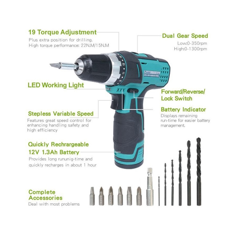 پیچگوشتی شارژی Pro’sKit مدل PT-1206F یک ابزار قدرتمند و کارآمد برای مصارف خانگی، فنی و نیمهصنعتی است. این دستگاه با طراحی ارگونومیک و ویژگیهای فنی مناسب، گزینهای ایدهآل برای کاربران حرفهای و علاقهمندان به پروژههای DIY محسوب میشود.