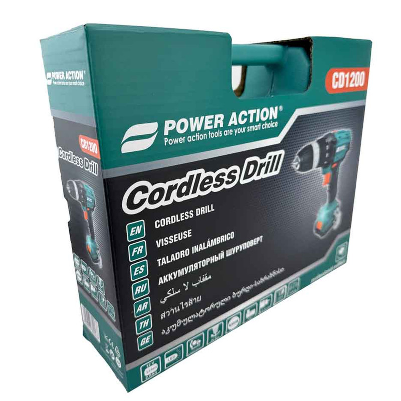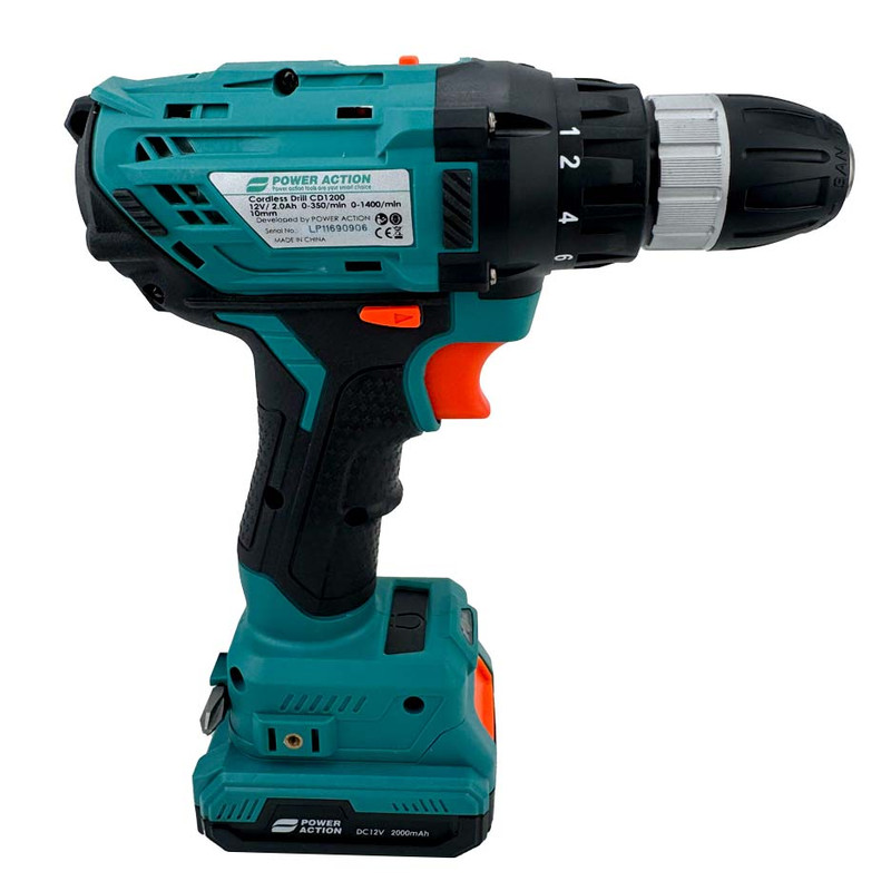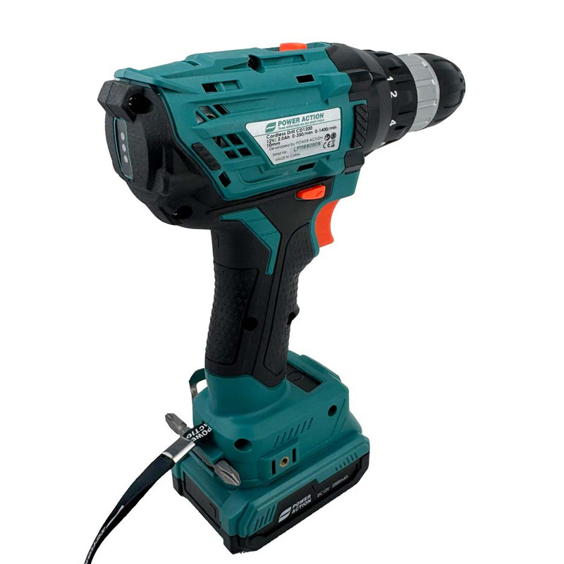 دریل شارژی 12 ولت دو باتری پاوراکشن مدل CD1200 دارای موتوری قدرتمند است که میتواند به حداکثر دور موتوری برابر با 1400 دور بر دقیقه در حالت آزاد دست پیدا کند. تورکمتر 18 حالته تعبیه شده و دکمه ی مجزا 2 سرعته دارد. این محصول کاربران را قادر میسازد تا با توجه به نیاز خود بتوانند سرعت و قدرت گردش این دریل را تنظیم نمایند. دریل شارژی پاوراکشن دارای کلید گازی برای تنظیم سرعت و همچنین کلید تغییر حالت گردش چپگرد-راستگرد تعبیه شده برای این محصول به کاربران کمک میکند تا بدون هیچ مشکلی به باز و بستن پیچها و سوراخکاری در متریالهای مختلف بپردازد. از دیگر مزایای این محصول میتوان به نمایشگر شارژر باطری روی بدنه و چراغ ال ای دی برای روشن کردن محل سوراخکاری و داشتن 2 باتری لیتیومی 12 ولت و شارژر خشابی اشاره کرد. سه نظام تعبیه شده برای این محصول از نوع اتوماتیک با سایز 10 میلیمتری بوده که با دقت بالایی ساخته شده است همچنین وجود یک کیف مستحکم BMC مخصوص پرتابل عرضه میگردد، تا کاربران نگرانی بابت صدمه دیدن محصول برای حمل و جابه جایی نداشته باشند.