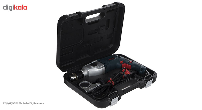 • سایر توضیحات: – طراحی جمع و جور و وزن مناسب – قابلیت استفاده برای هر سطح محکم حتی بتن – دارای دسته با طراحی ارگونومی و بسیار نرم و با خاصیت ضد لغزش – فرکانس: 50/60 Hz – دارای دو دنده برای سرعت پایین و بالا – قابلیت کنترل سرعت – مناسب برای سوراخکاری معمولی و سوراخکاری ضربه‌ای – دارای دسته‌ی کمکی قابل تنظیم – طول کابل: 2 متر – حداکثر قطر سوراخکاری در چوب: 30 میلی‌متر – حداکثر قطر سوراخکاری در مصالح: 16 میلی‌متر