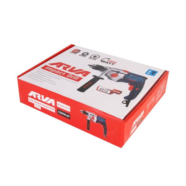 - سایر توضیحات: دریل 5315 آروا یک دریل چکشی گیربکسی با نیم تنه فلزی می باشد .این دریل از موتور قدرمتند 1050 واتی بهره می برد . گیربکس این دریل دارای دو سرعت می باشد و ظرفیت سوراخکاری این دریل در اجسام مختلف به شرح زیر می باشد : ظرفیت سوراخکاری در چوب: 30 میلیمتر ظرفیت سوراخکاری در فلز: 13 میلیمتر ظرفیت سوراخکاری در بتن: 16 میلیمتر