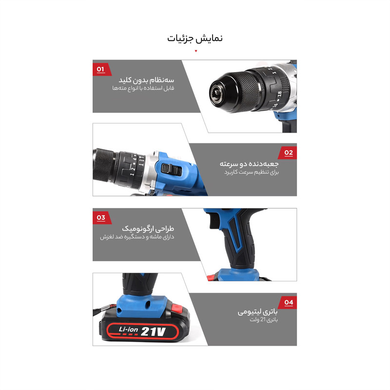 - ویژگیهای دریل: سیستم گردش راستگرد، سیستم گردش چپگرد