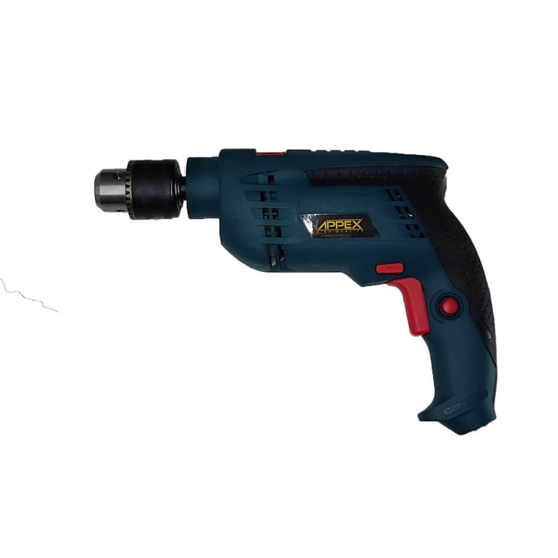 دریل چکشی برقی اپکس حداکثر قدرت 800 وات مناسب برای سوراخکاری ابزاری مفید برای هر منزل یا محل کار دارای 3 نظام آچارخور حداکثر قطر سوراخکاری 13 میلیمتر است.
